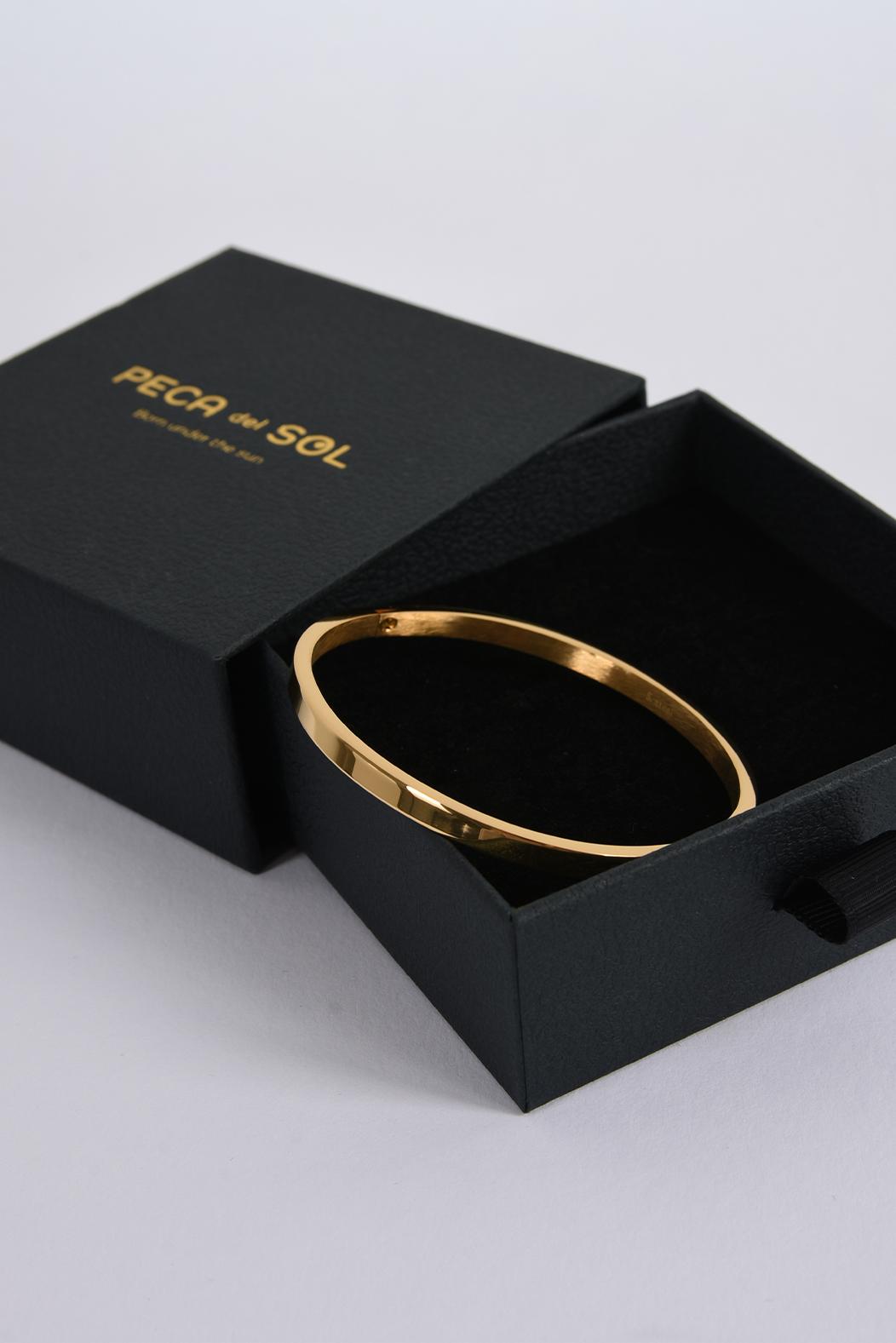 • tenký zlatý náramek z chirurgické oceli od PECA del SOL je minimalistický šperk s čistou linií, který staví na jednoduchosti, proporci a nadčasovém lesku