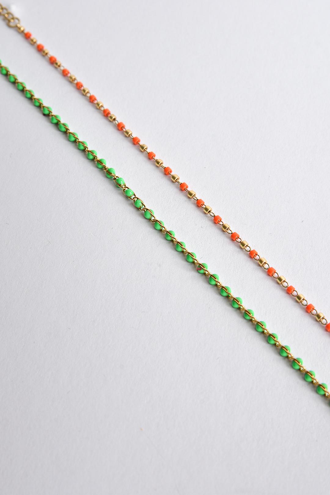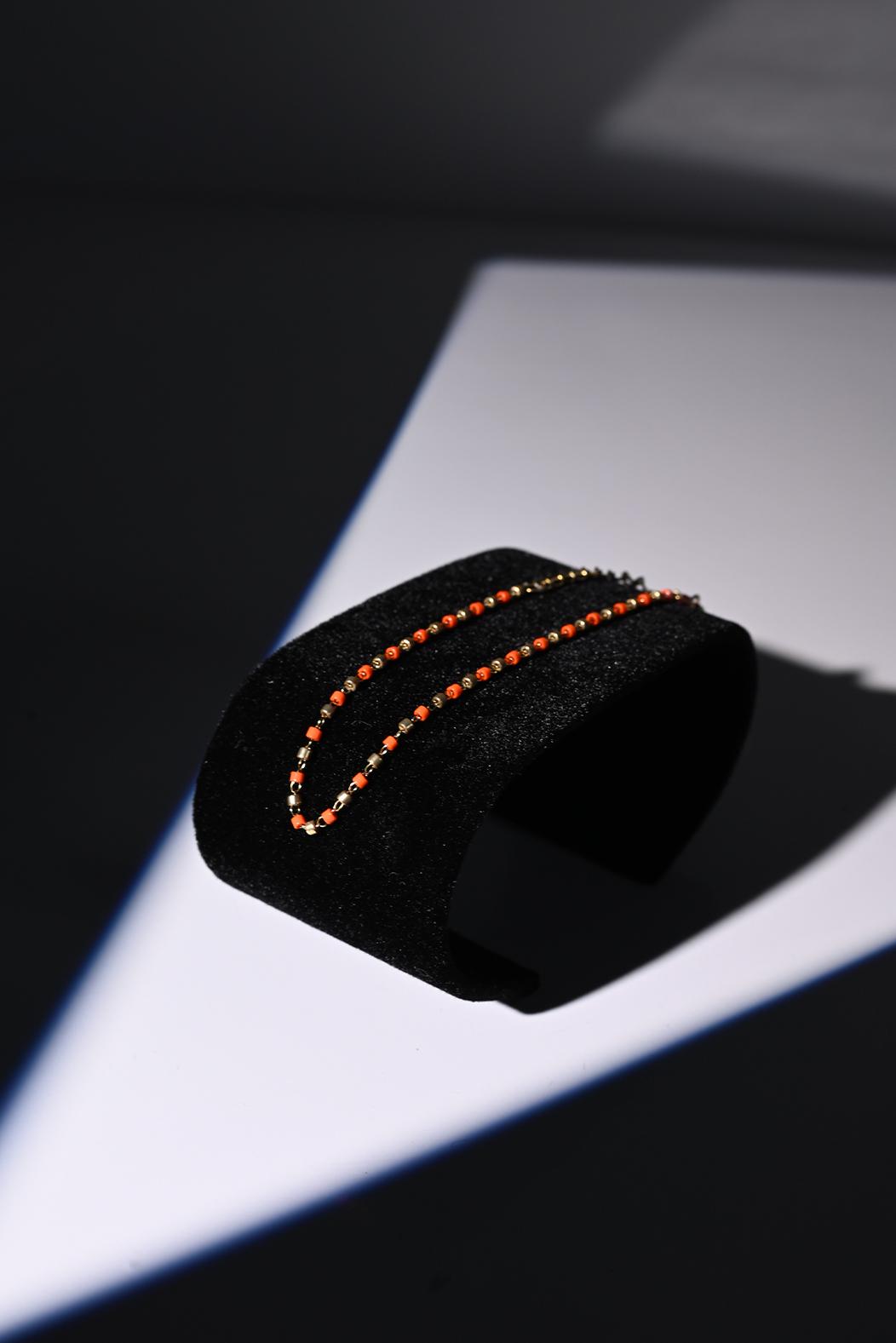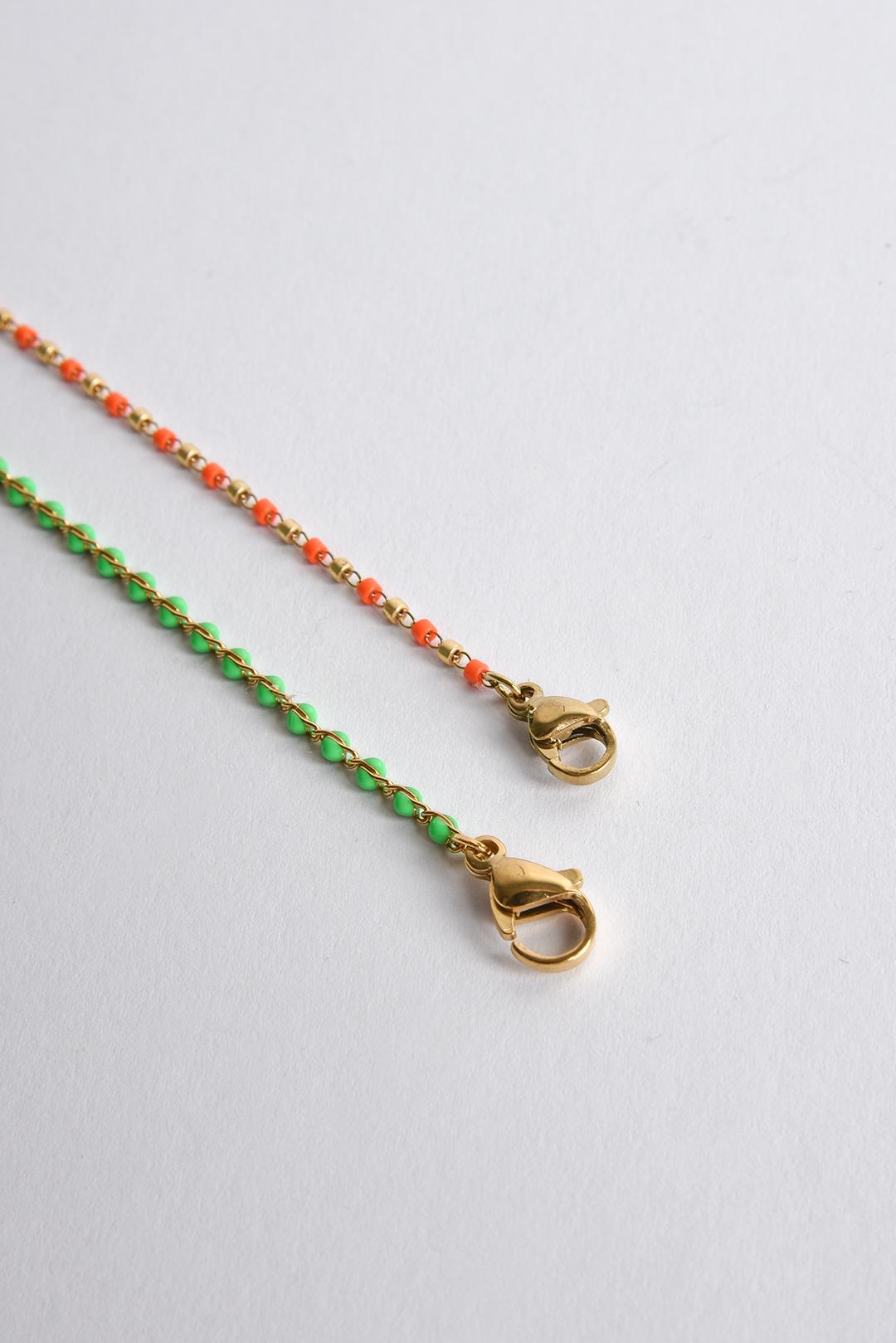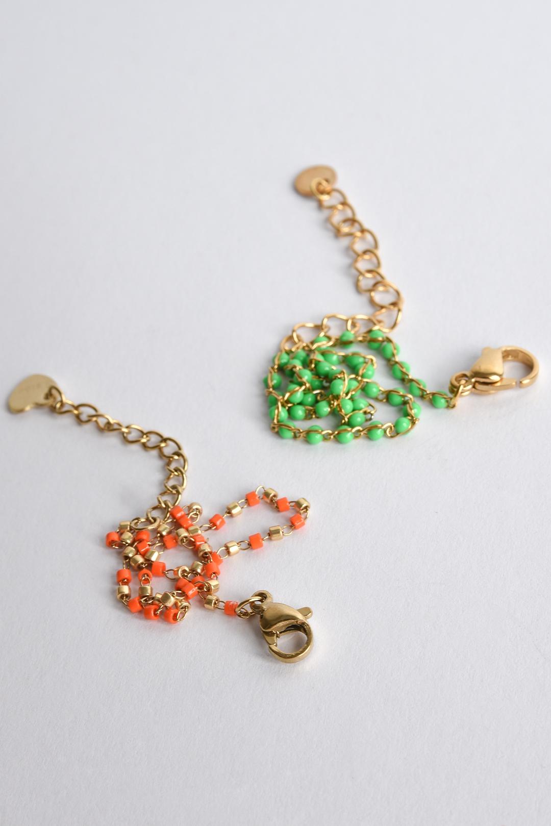 • kombinace drobných oranžových korálků a zlatých článků přináší svěží barevný akcent s jemným letním nádechem