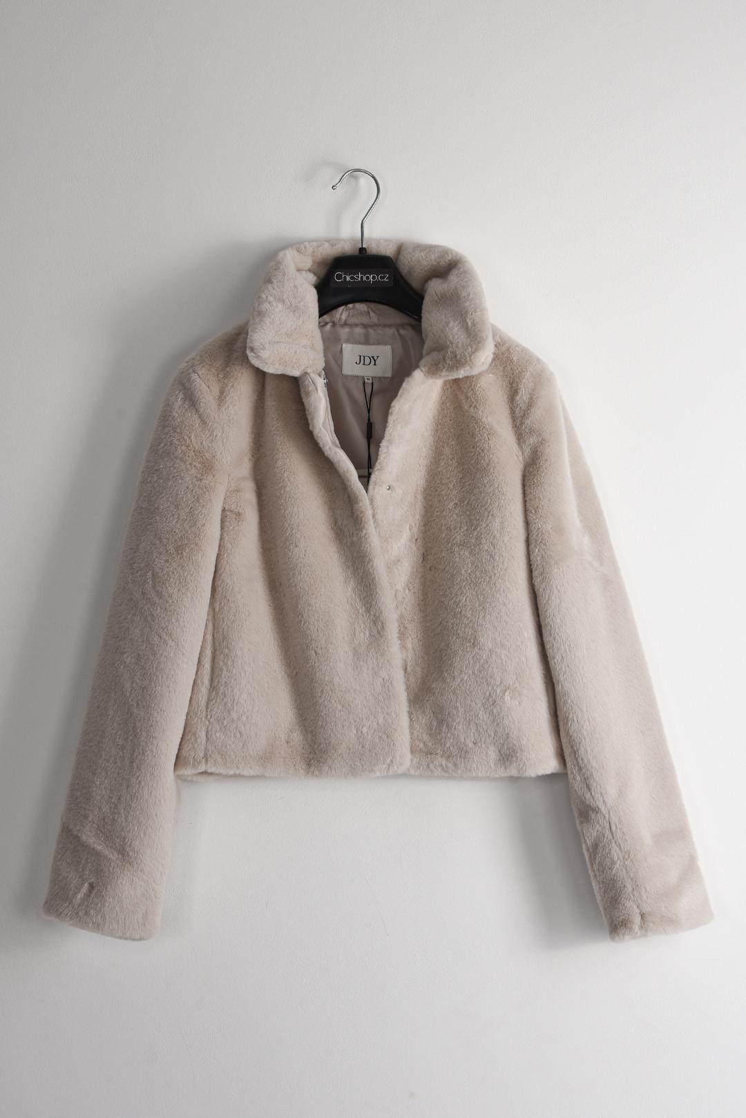 PODZIMNÍ PLYŠOVÝ KABÁTEK DÁMSKÝ KRÉMOVÝ JdY