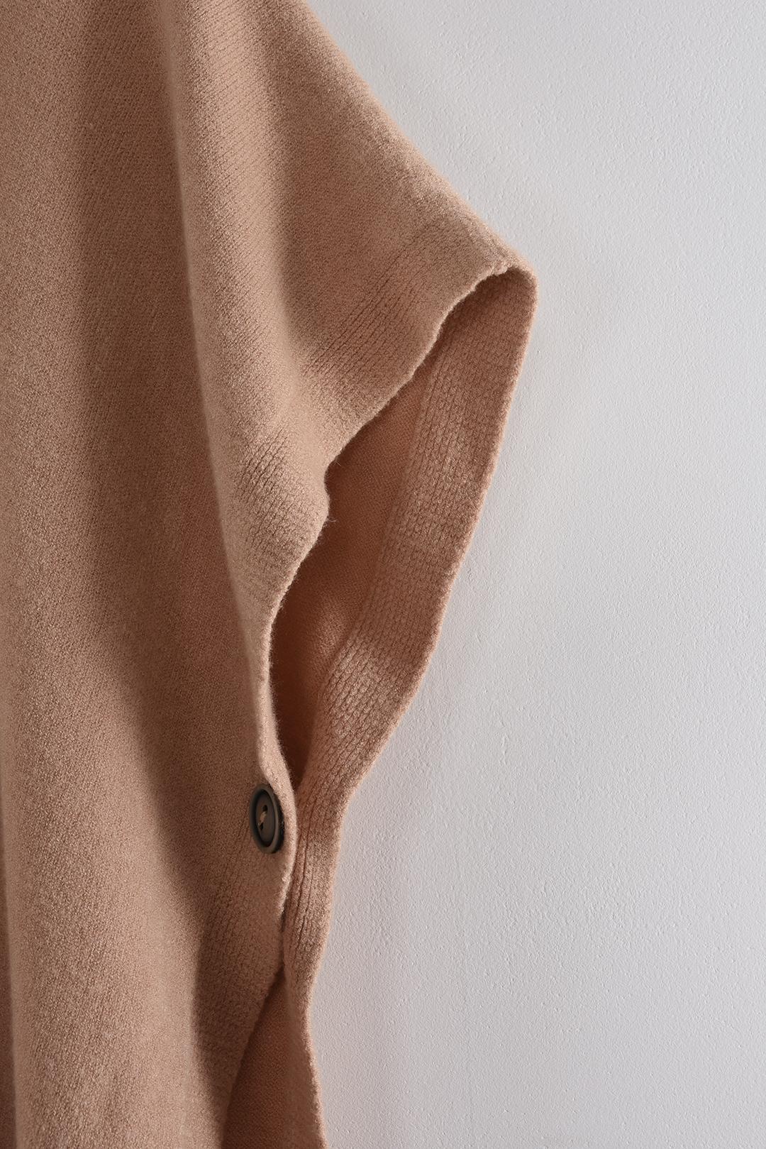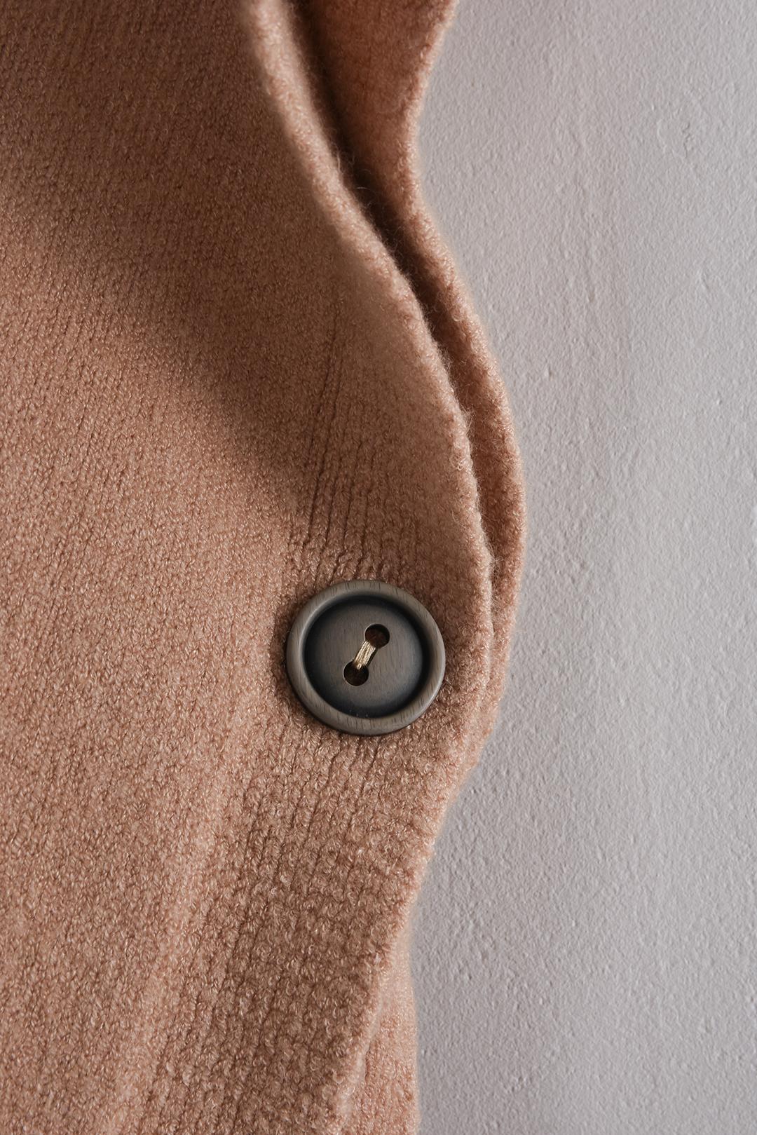 • boční strany úpletové vesty jsou prakticky sepnuté knoflíky, které dodávají vestě zajímavý detail a zároveň udržují její lehkou, otevřenou siluetu