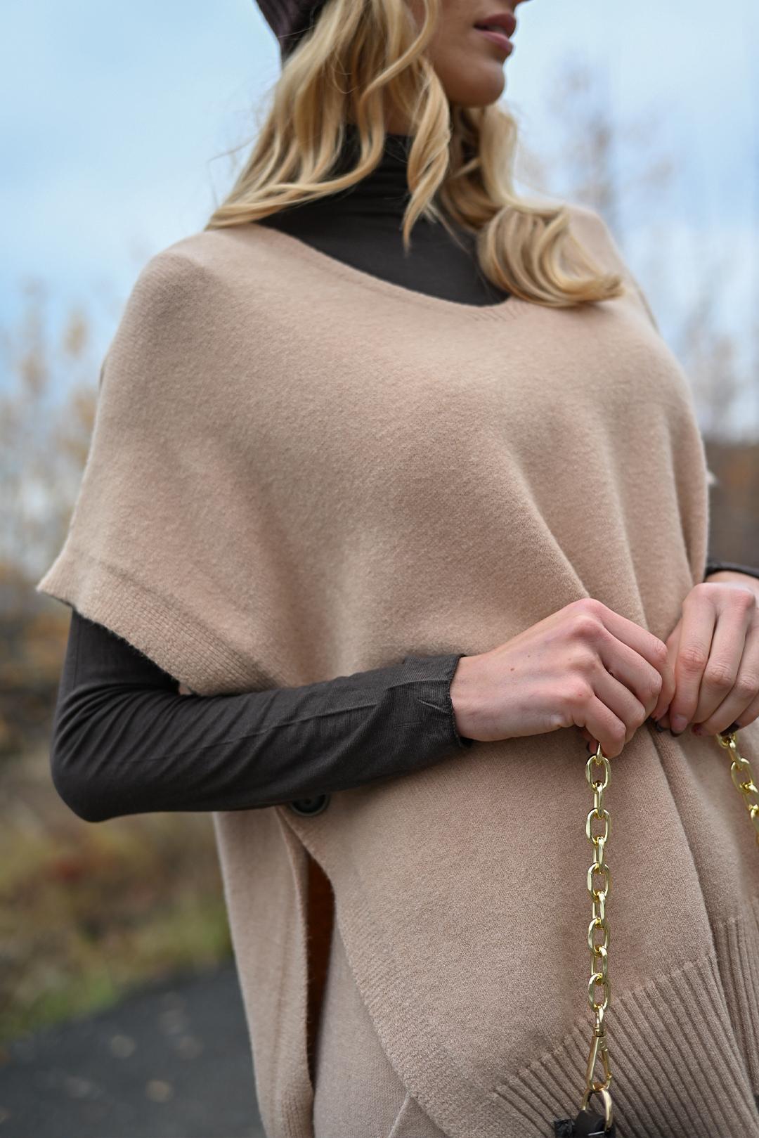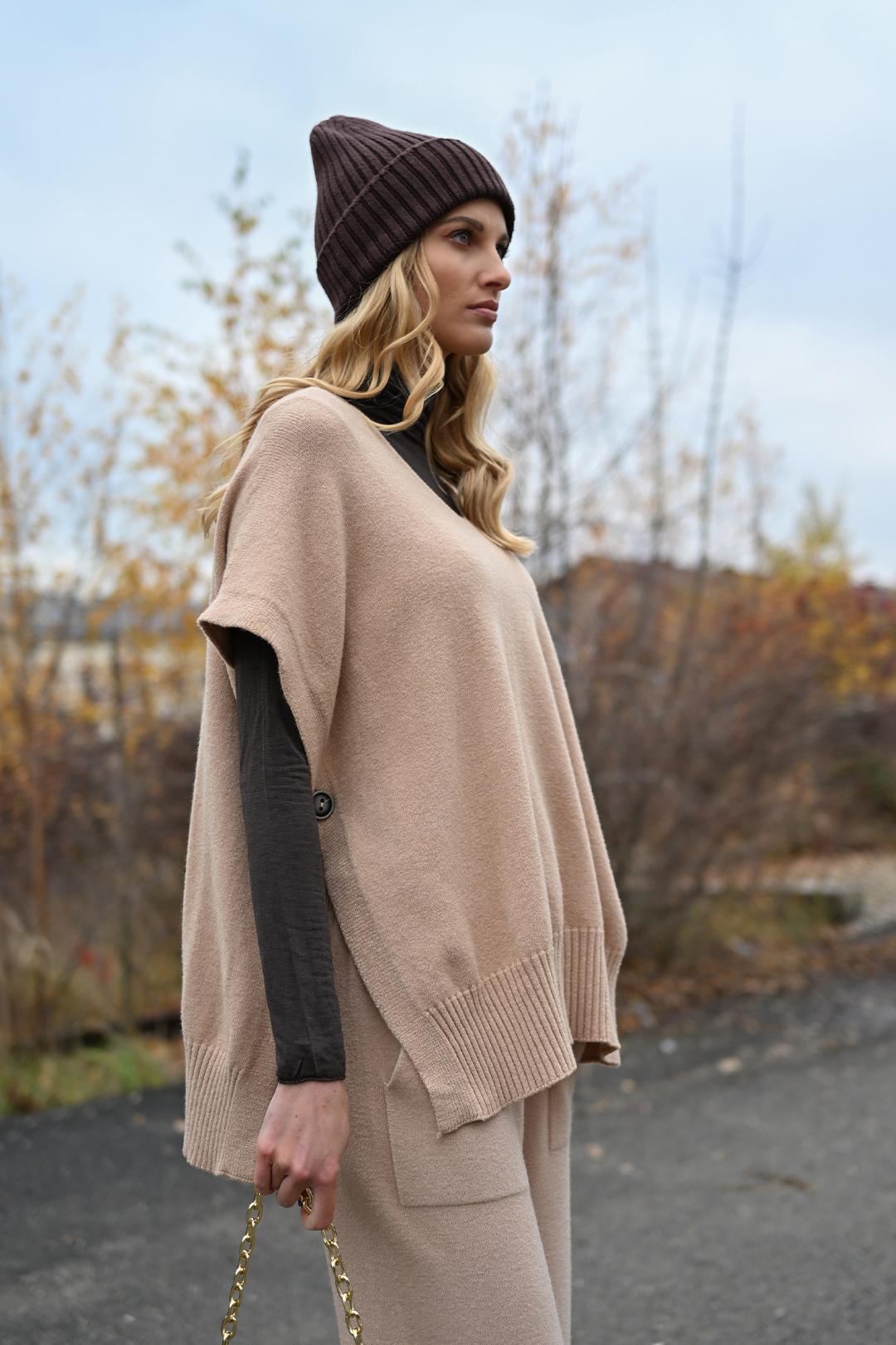 • béžová dámská úpletová vesta PECA del SOL – ideální kousek pro vrstvení po celou zimu