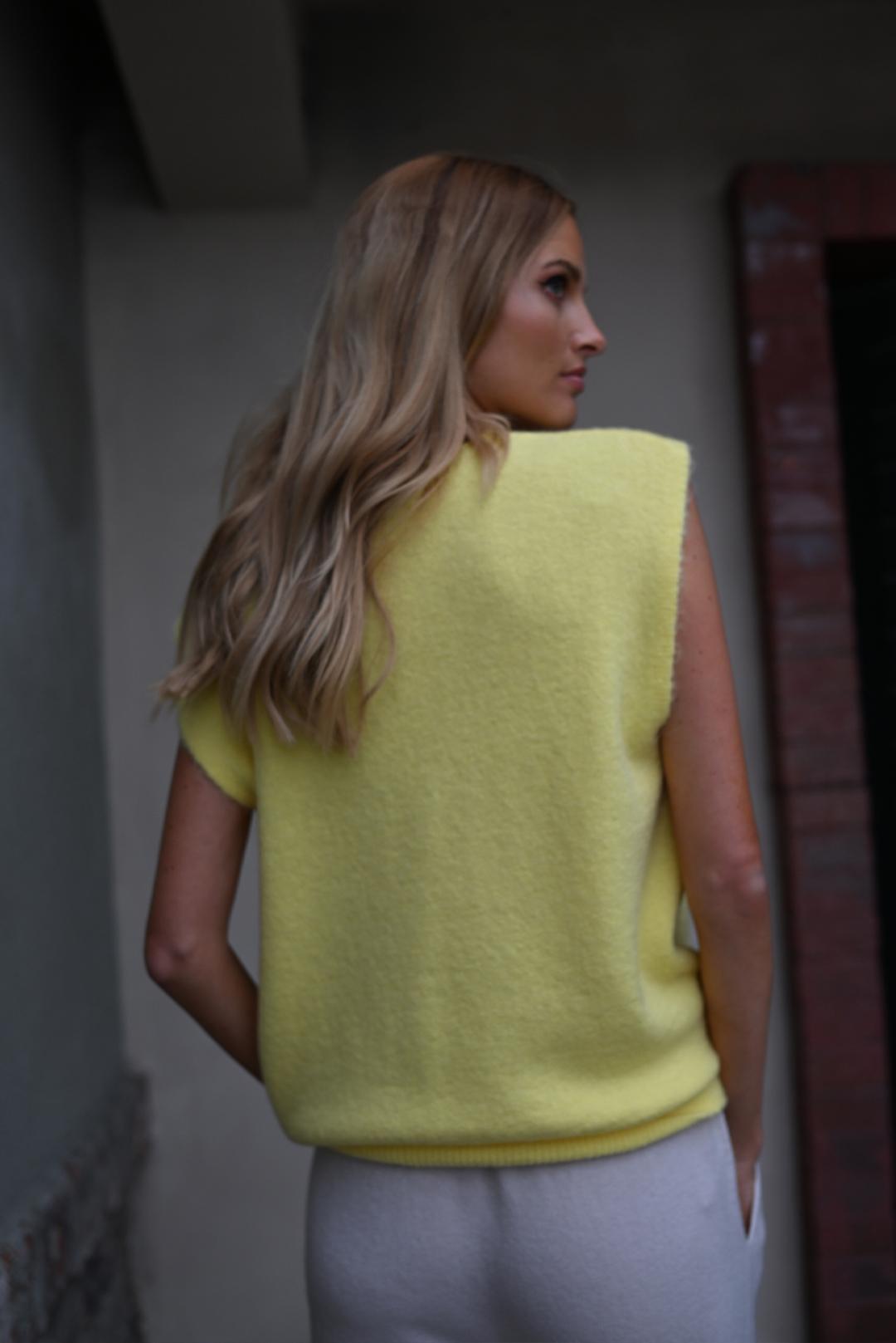• zářivě žlutá svetrová vesta dámská PECA del SOL vnese do vašeho outfitu optimismus a lehkost