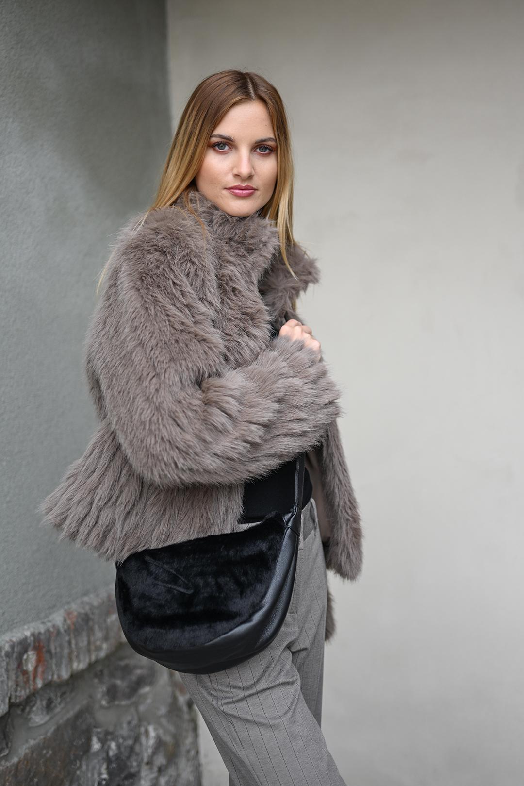 KRÁTKÝ CHLUPATÝ KABÁTEK ČERNÝ
