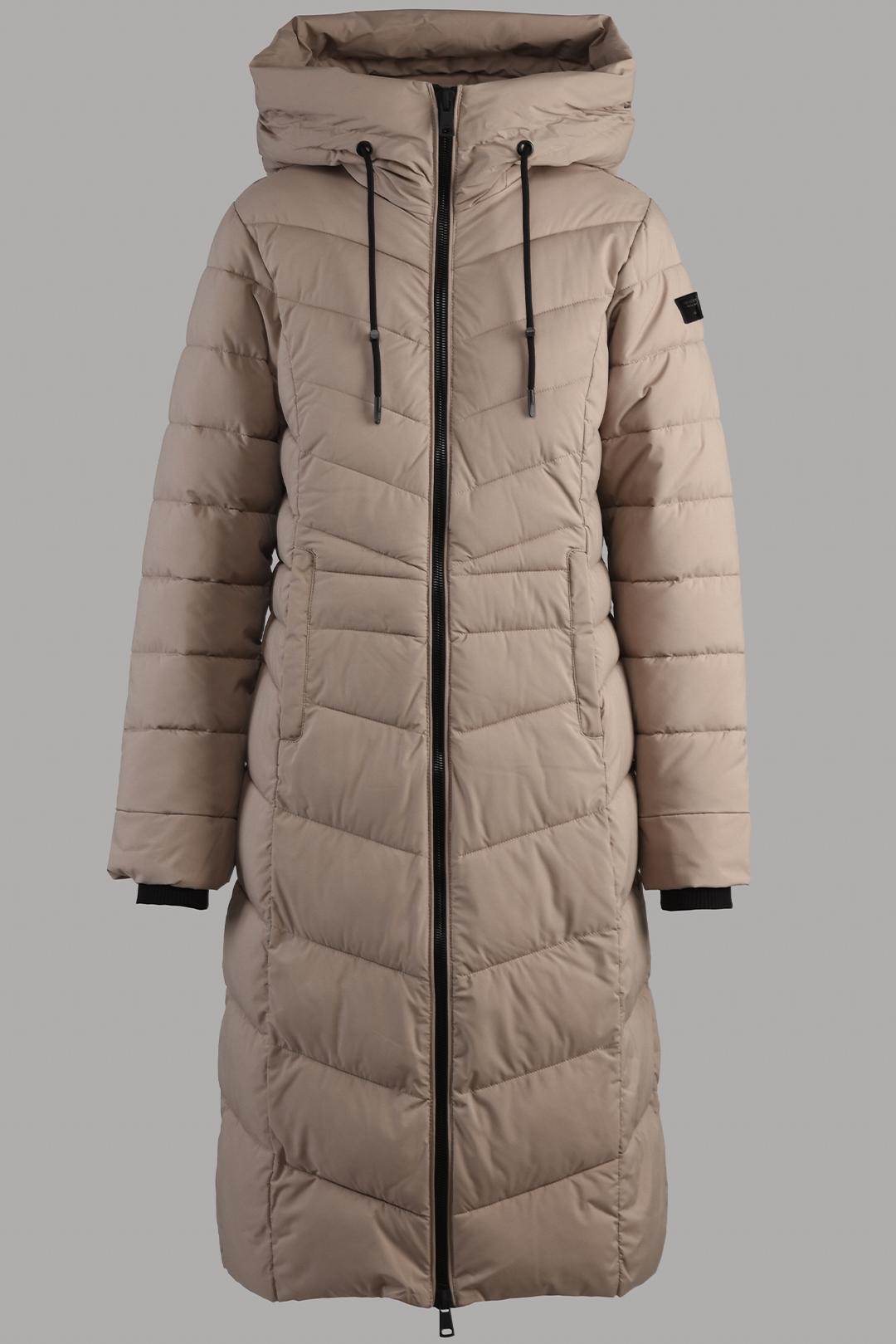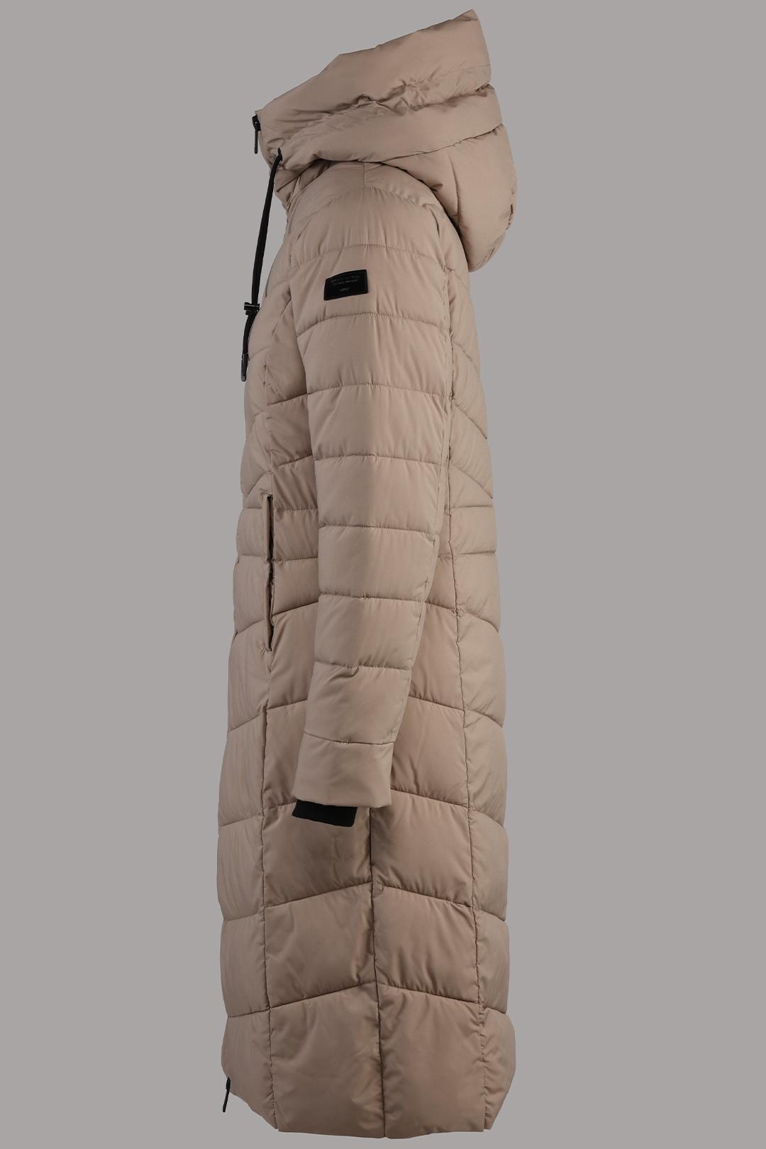 BÉŽOVÝ DLOUHÝ PROŠÍVANÝ KABÁT S KAPUCÍ Rino Pelle
