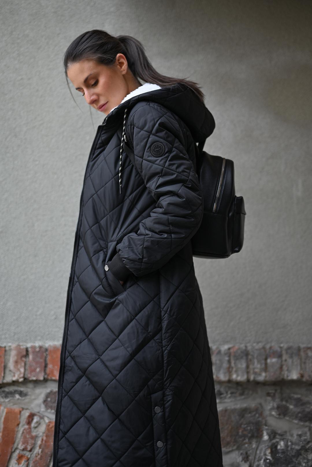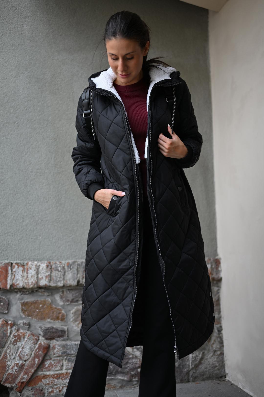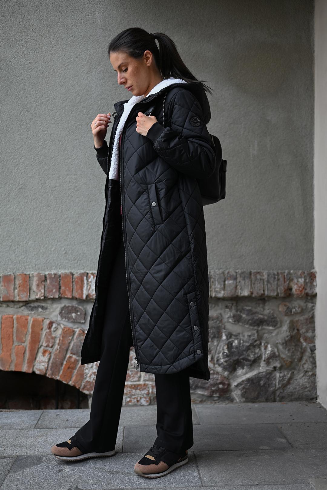 „Příjemný slušivý lehký dlouhý prošívaný kabát. Jsem s ním spokojena. Kdybyste váhali mezi dvěma velikostmi, vezměte tu menší. Běžně nosím S, zde jsem zakoupila XS a je mi volný.”