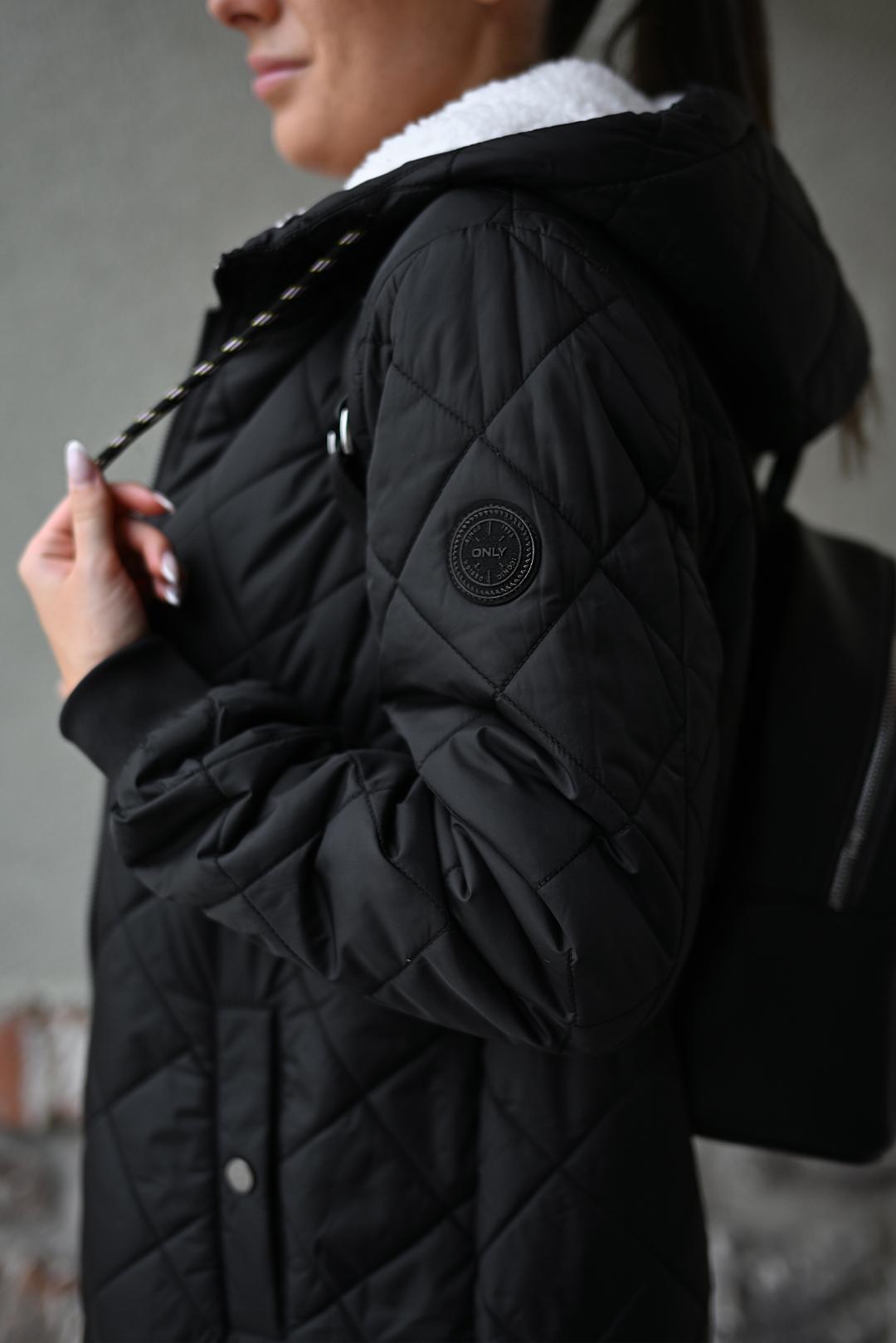• černý dlouhý prošívaný bomber kabát od dánské značky ONLY