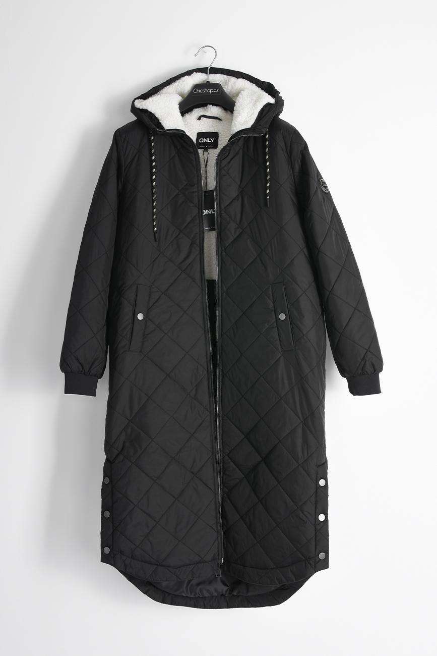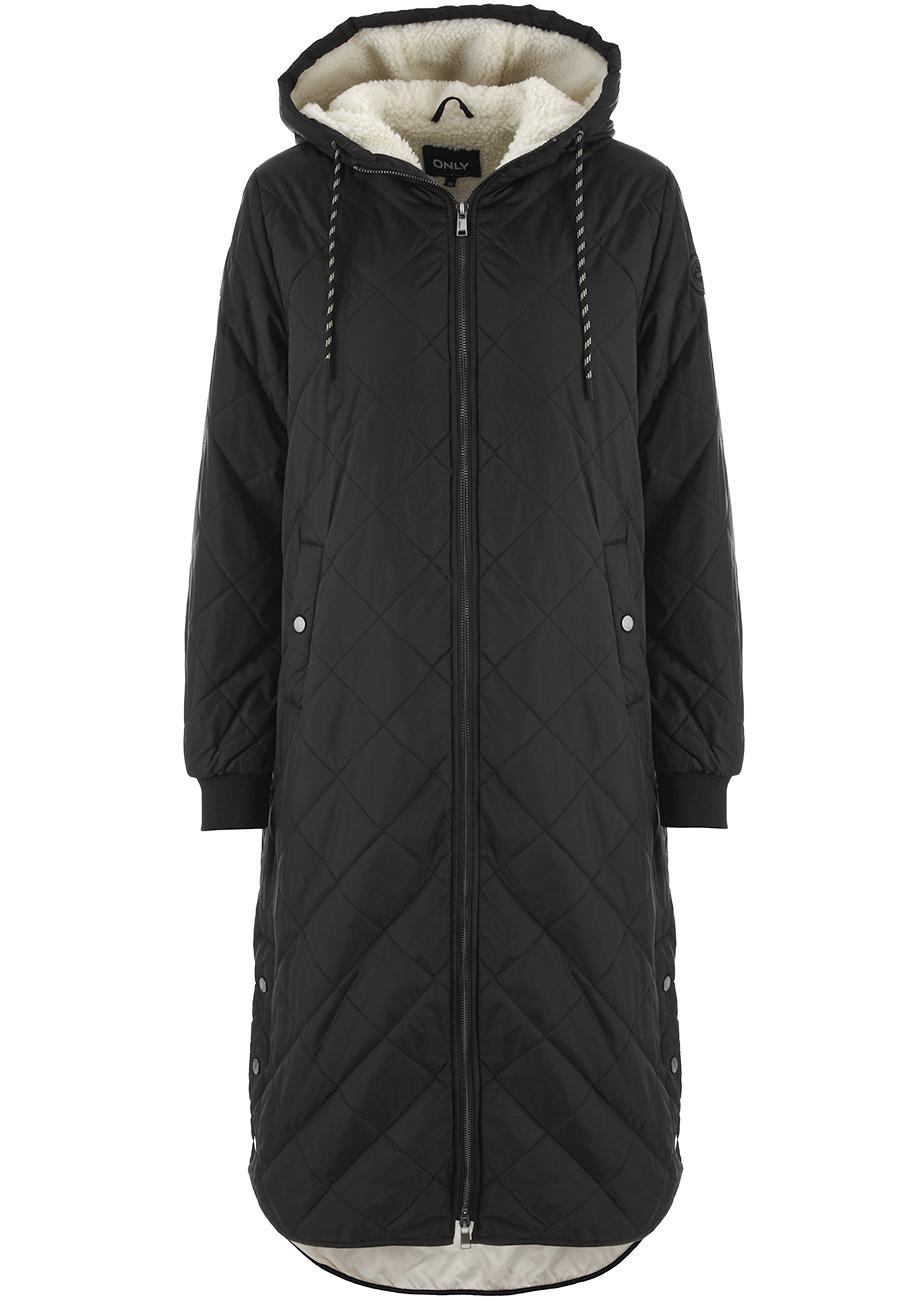 ČERNÝ DLOUHÝ PROŠÍVANÝ BOMBER KABÁT Only