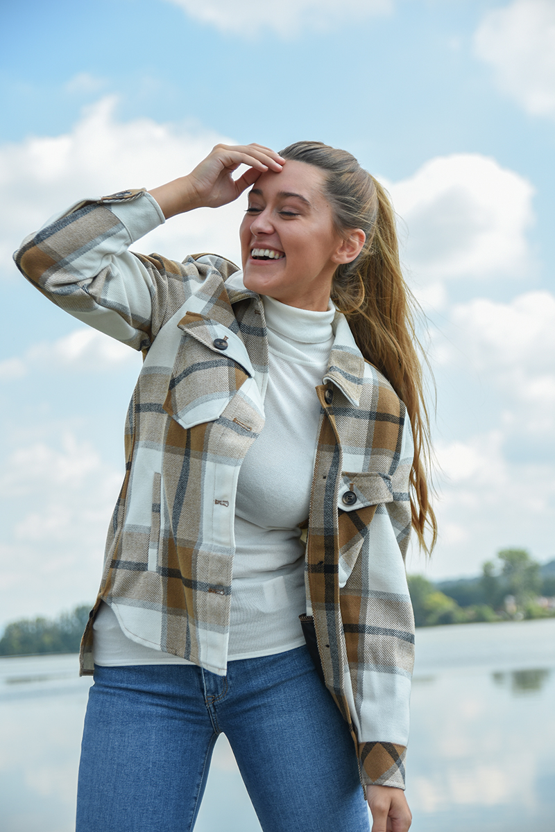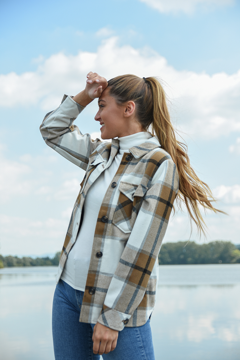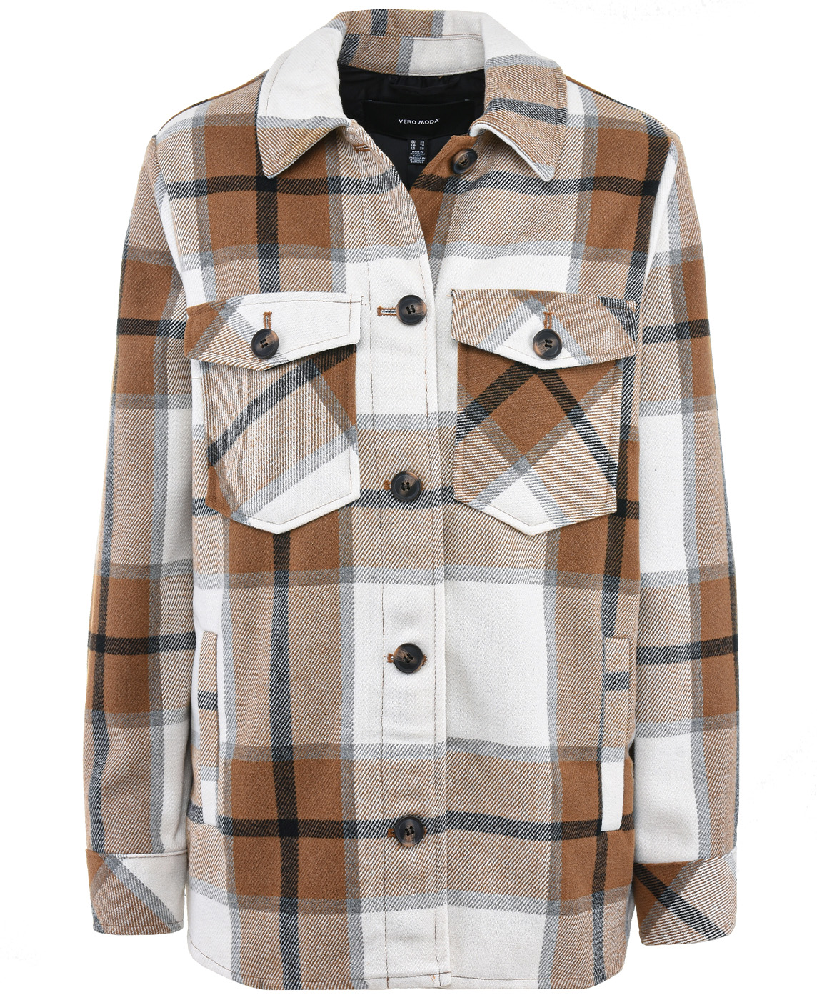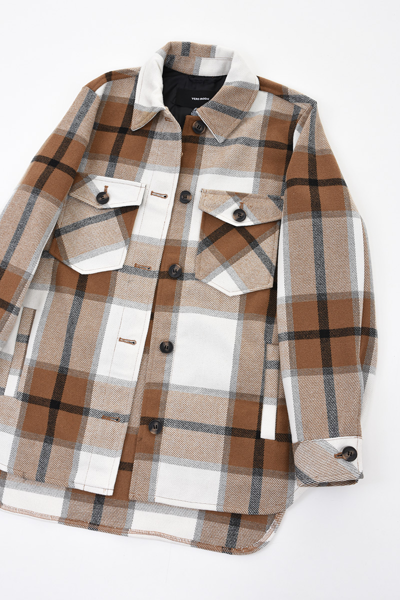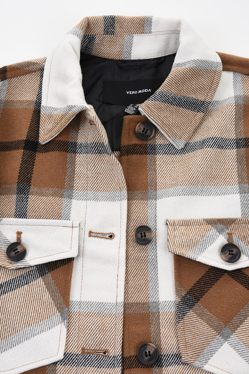 HNĚDÁ KOSTKOVANÁ KOŠILOVÁ BUNDA Vero Moda