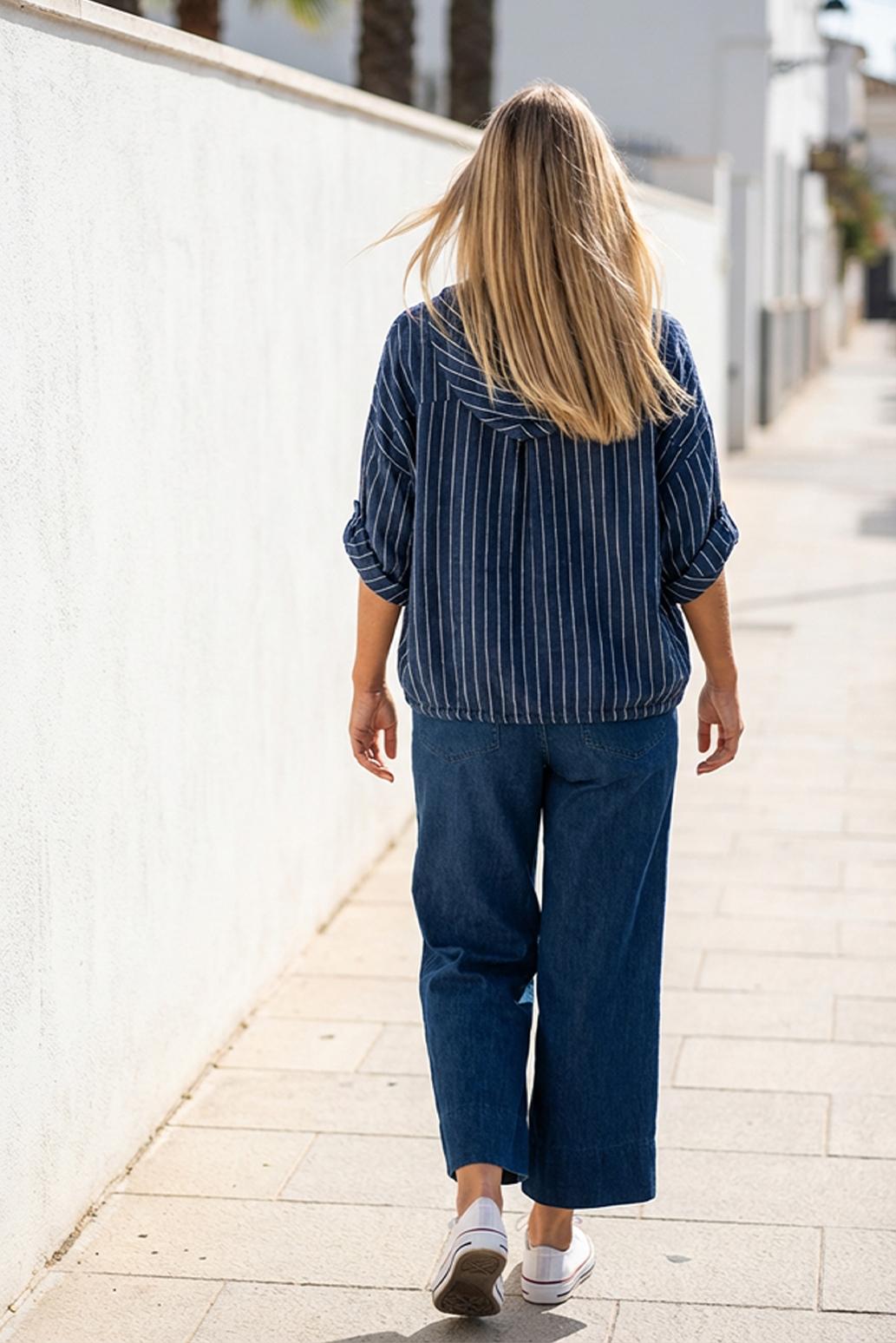 • lněná bunda s proužky PECA del SOL v tmavě modrém/navy odstínu s bílým proužkem v sobě nese nenucenou eleganci i lehce sportovní nádech, který snadno zapadne do každodenního šatníku