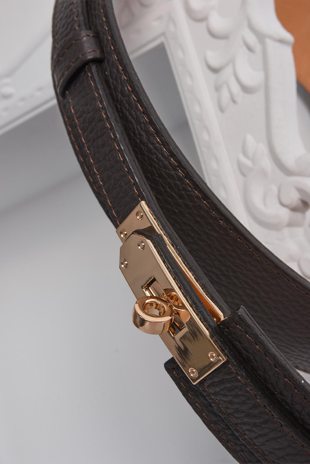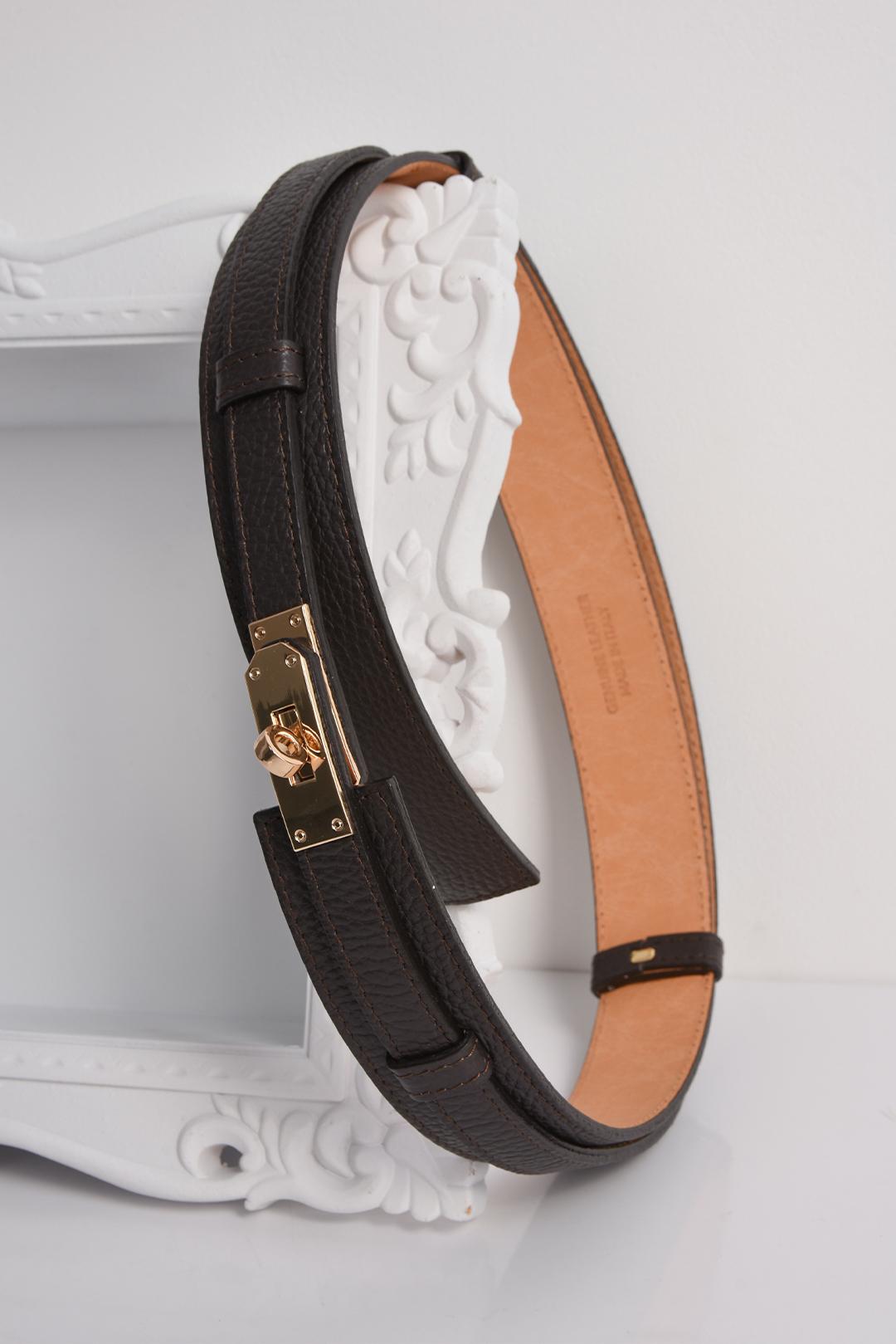 • hnědý kožený pásek dámský  PECA del SOL v temně čokoládovém odstínu je sofistikovaný a dodává outfitu výrazný, ale stále kultivovaný akcent