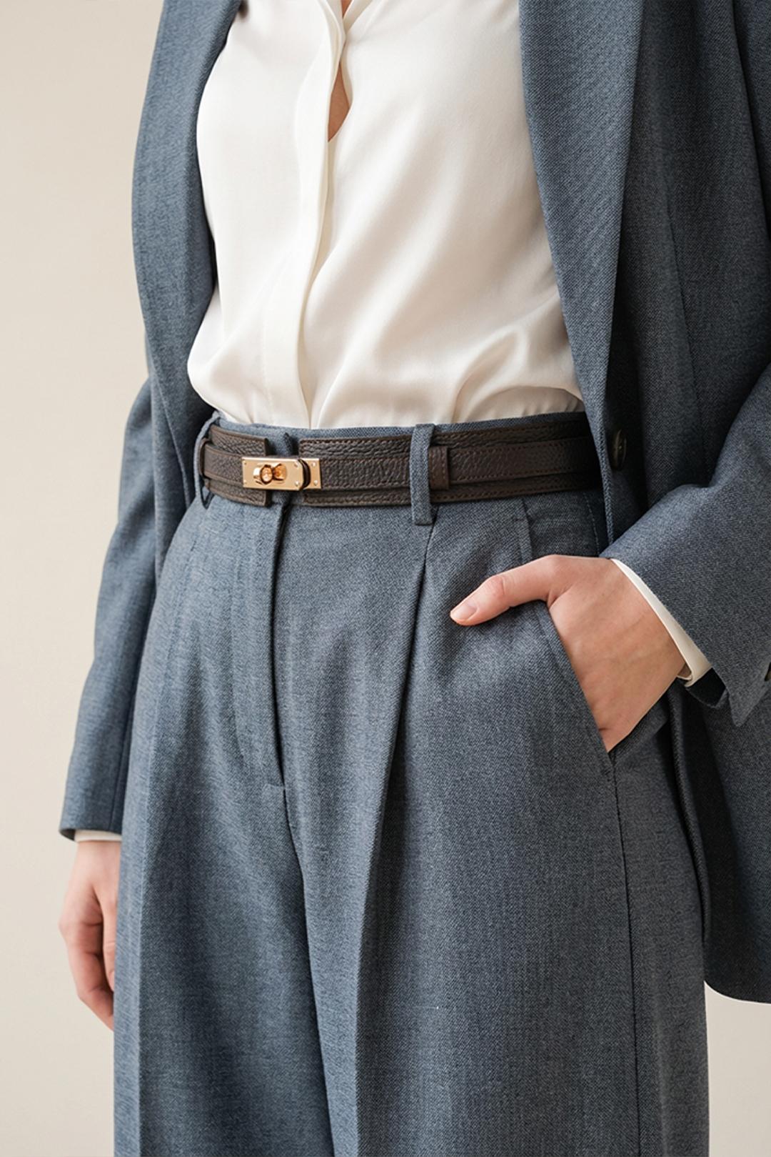 • tento kožený pásek je ideální doplněk k šatům, sakům i kalhotám, kde dokáže outfit sjednotit a dodat mu finální výraz
