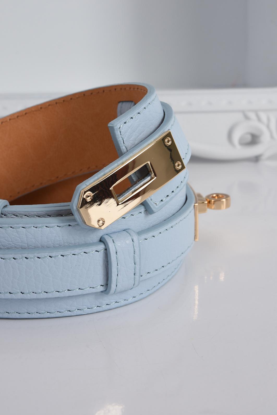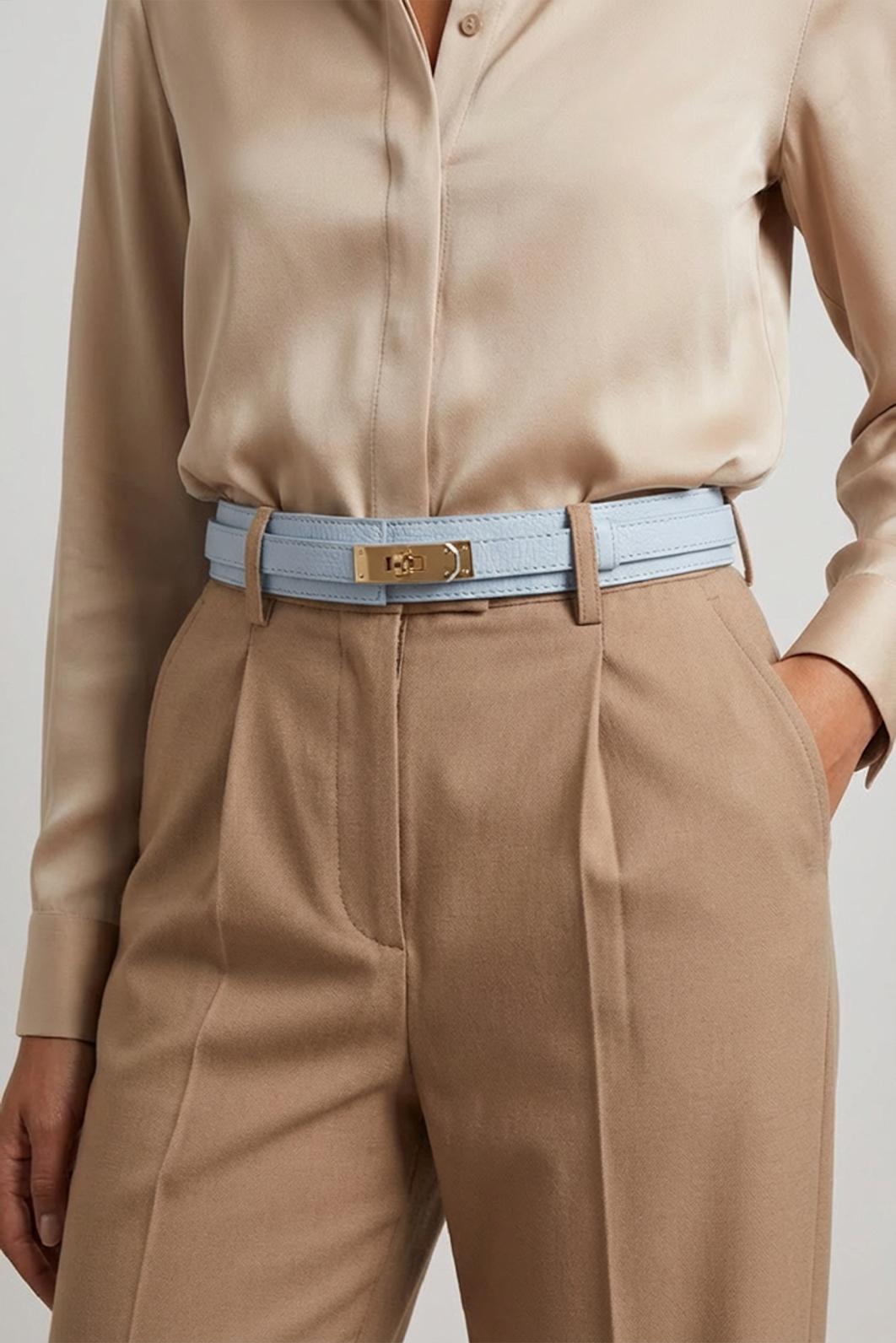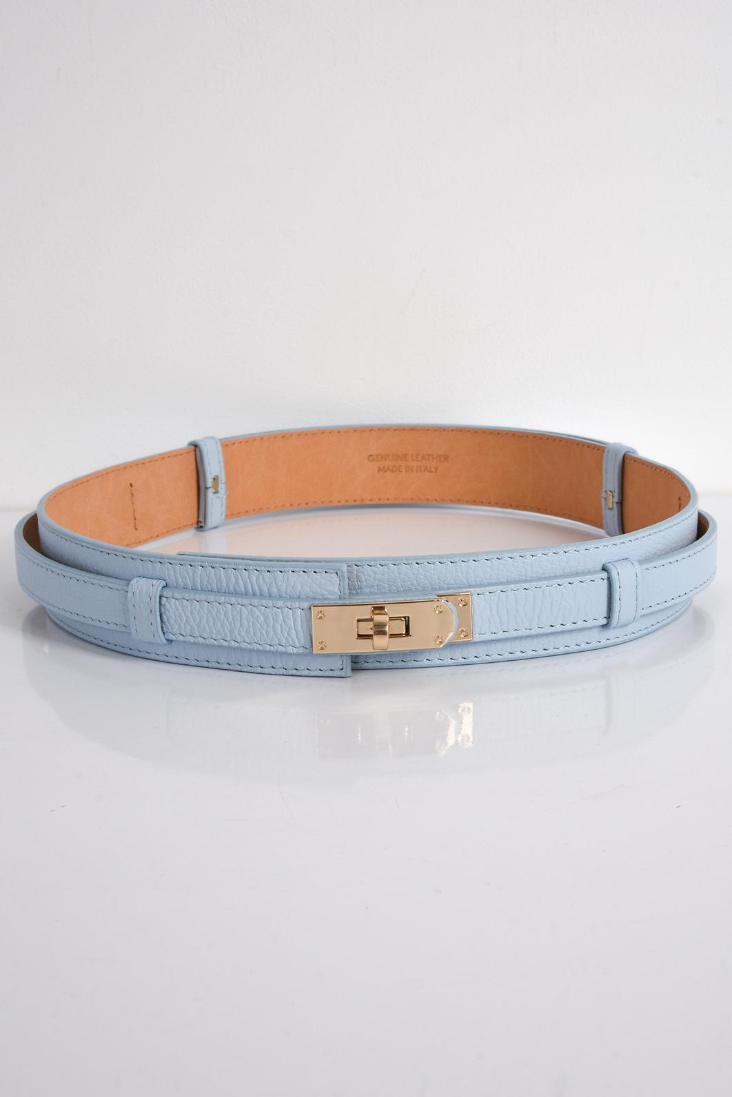 • chic dámský široký kožený pásek PECA del SOL ve světle modrém pastelovém odstínu dusty blue je jemným, ale nepřehlédnutelným detailem, který krásně doplní každý outfit