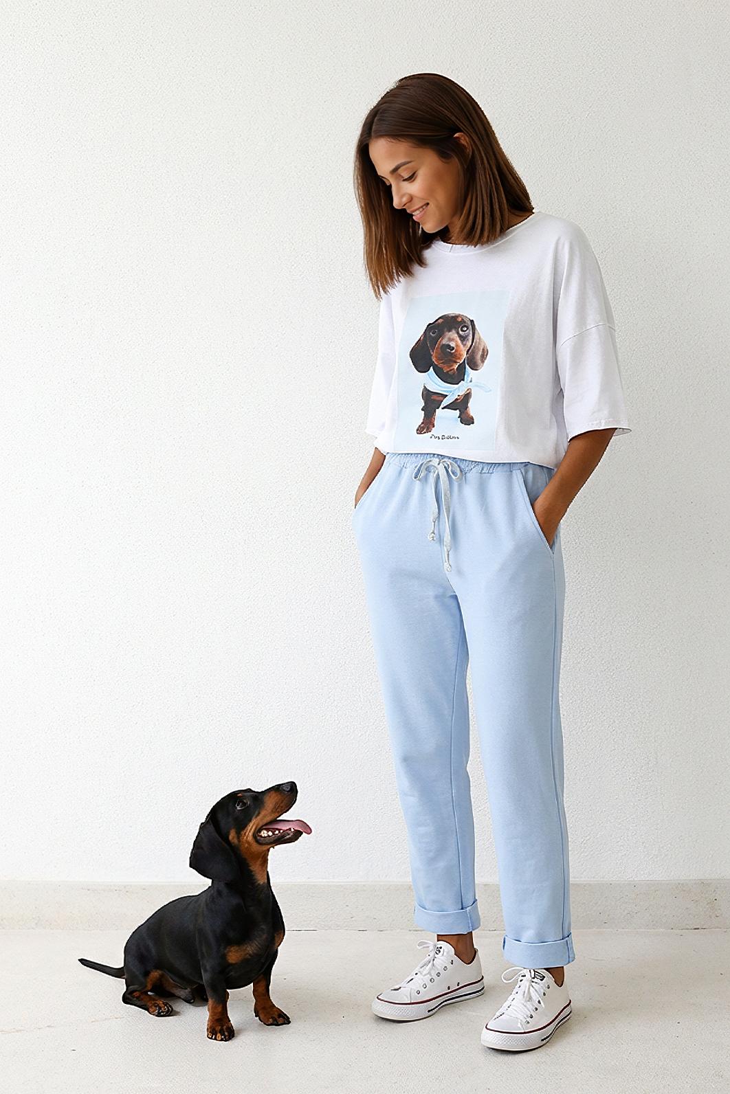 BAVLNĚNÉ TEPLÁKY DÁMSKÉ SVĚTLE MODRÉ PECA de SOL