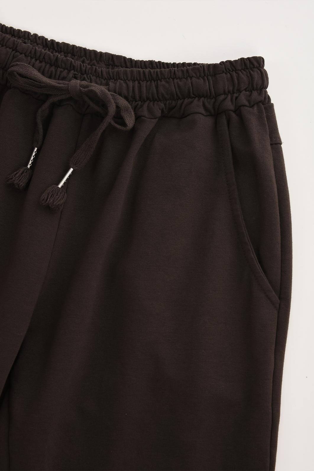 • elastický pas hnědých tepláků se šňůrkou umožňuje utažení podle potřeby a krásně drží, aniž by tlačil
