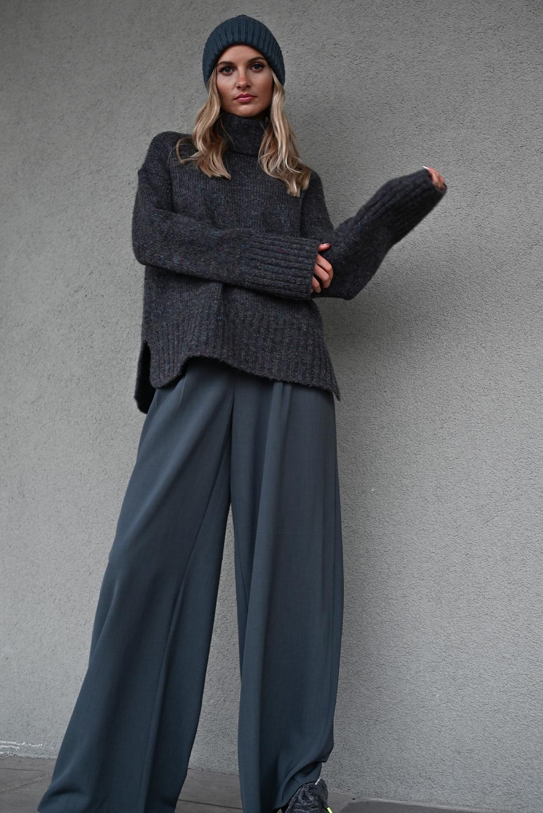 • tmavě šedý odstín je moderní a univerzální – snadno ho zkombinujete jak s bílou košilí, basic topem, tak i barevnými doplňky