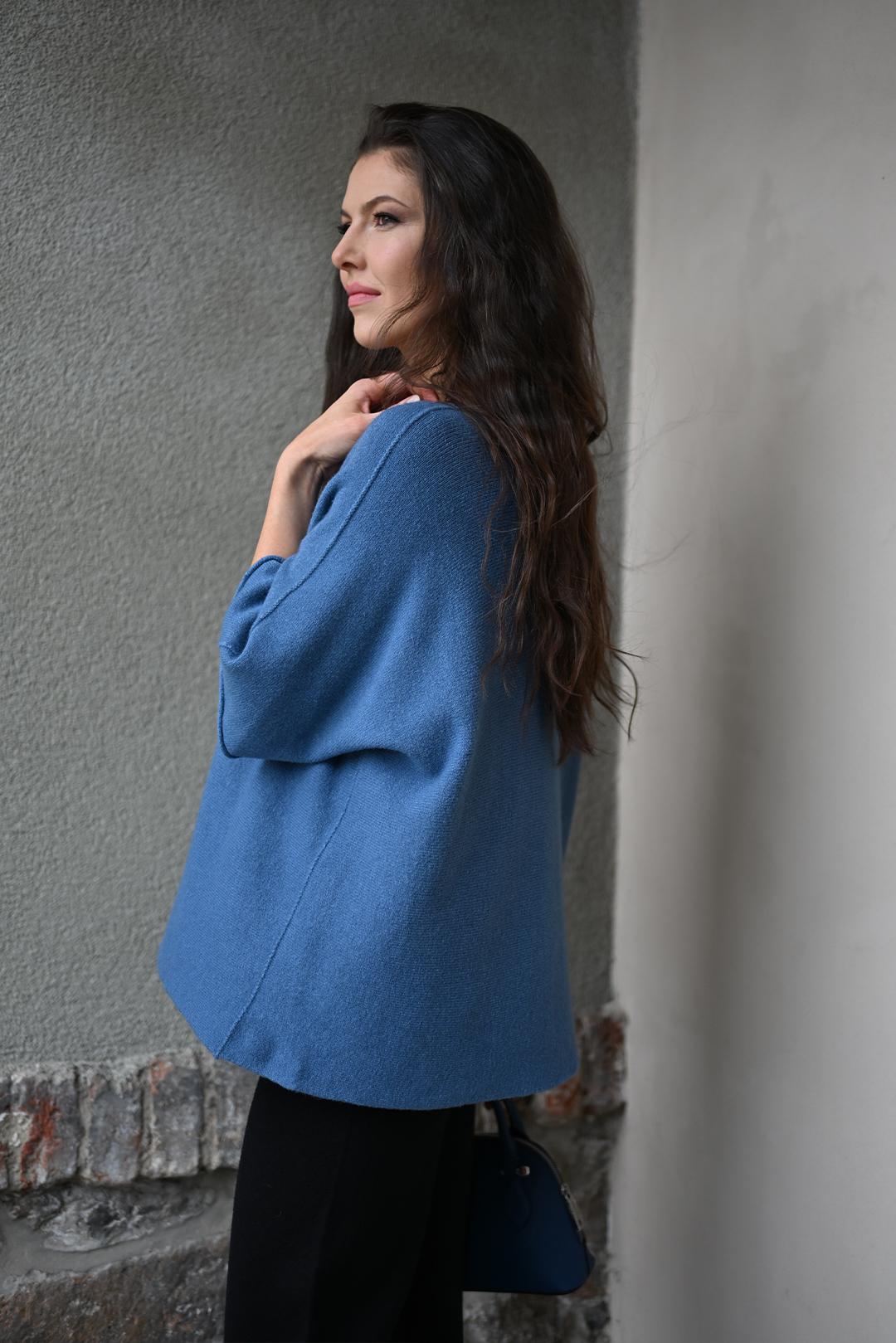 LAGUNOVĚ MODRÉ TRIČKO S NETOPÝŘÍM RUKÁVEM  Iduna