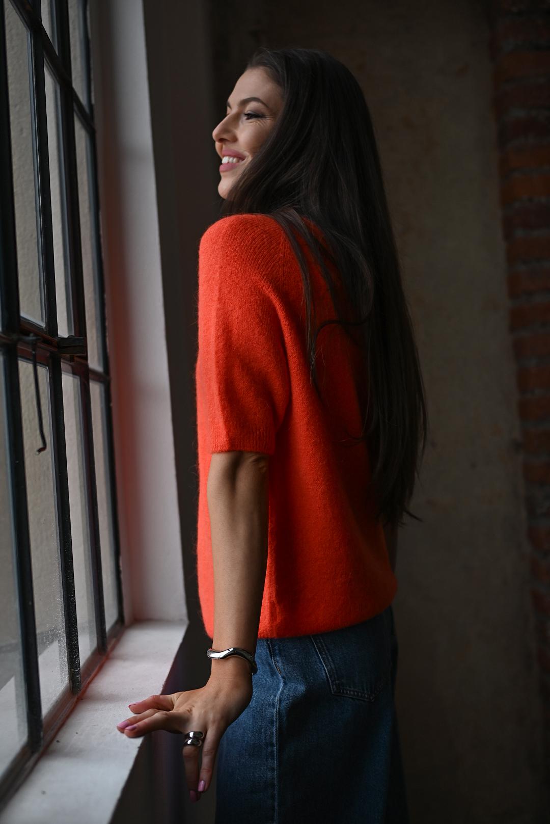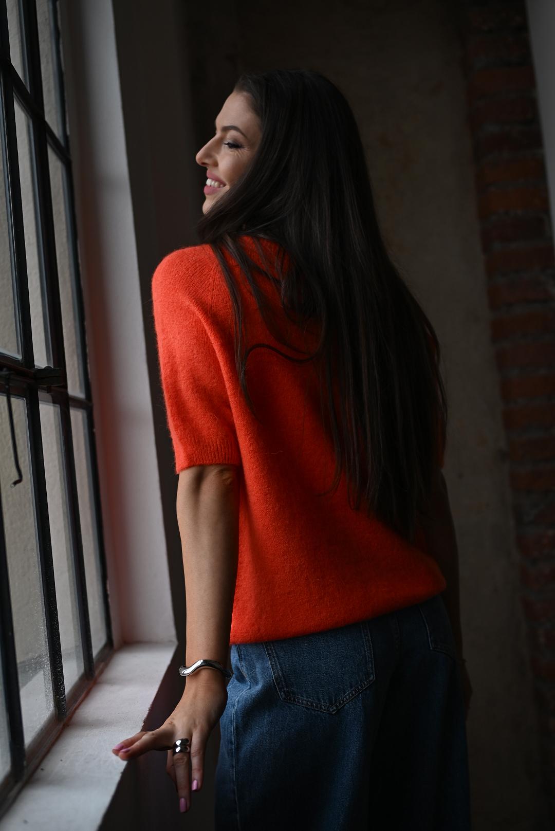 • originální svetrové tričko v sytě korálové barvě rozzáří každý Váš den i outfit