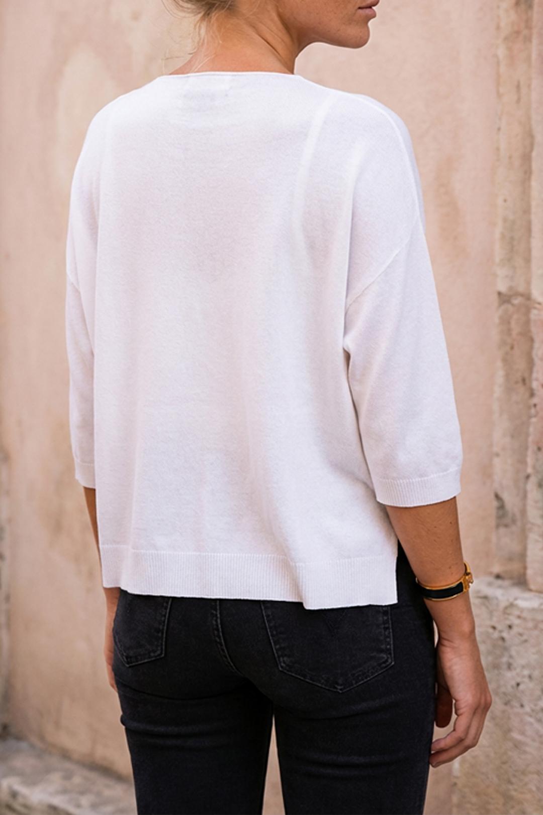 LEHKÉ BÍLÉ ÚPLETOVÉ TRIČKO S VÝSTŘIHEM PECA del SOL
