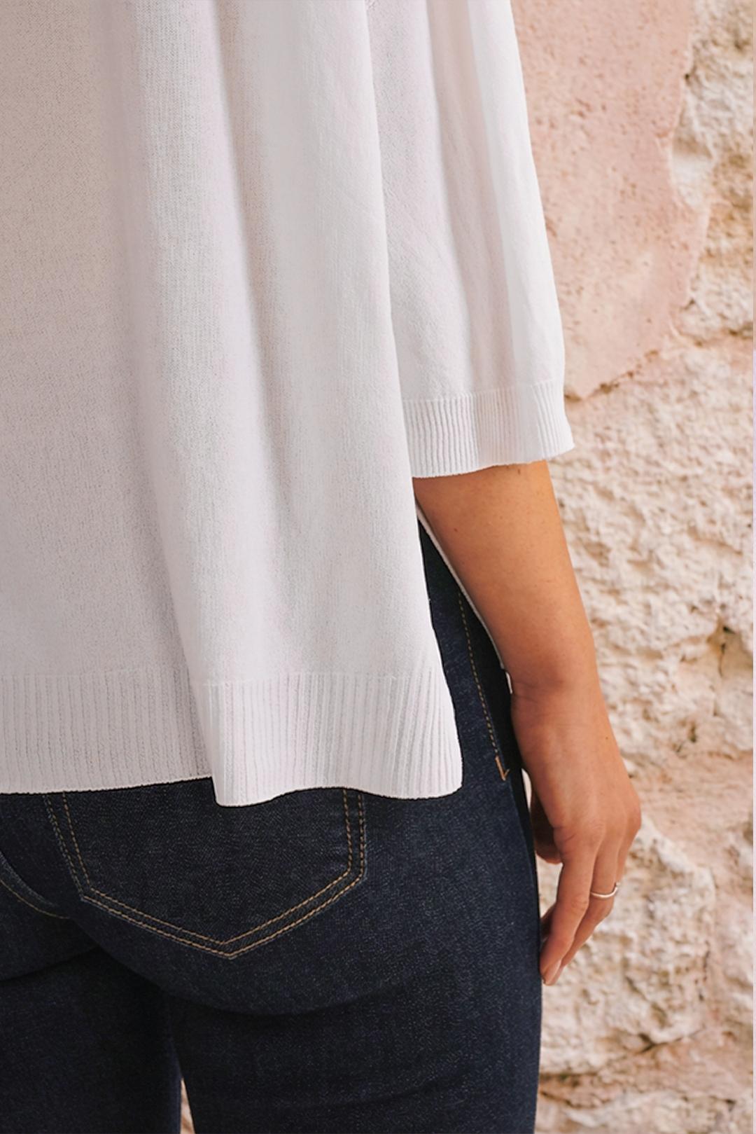 • jemné bílé úpletové tričko s výstřihem PECA del SOL v čistém bílém tónu působí lehce, vzdušně a přináší do šatníku nenucenou eleganci s moderním nádechem