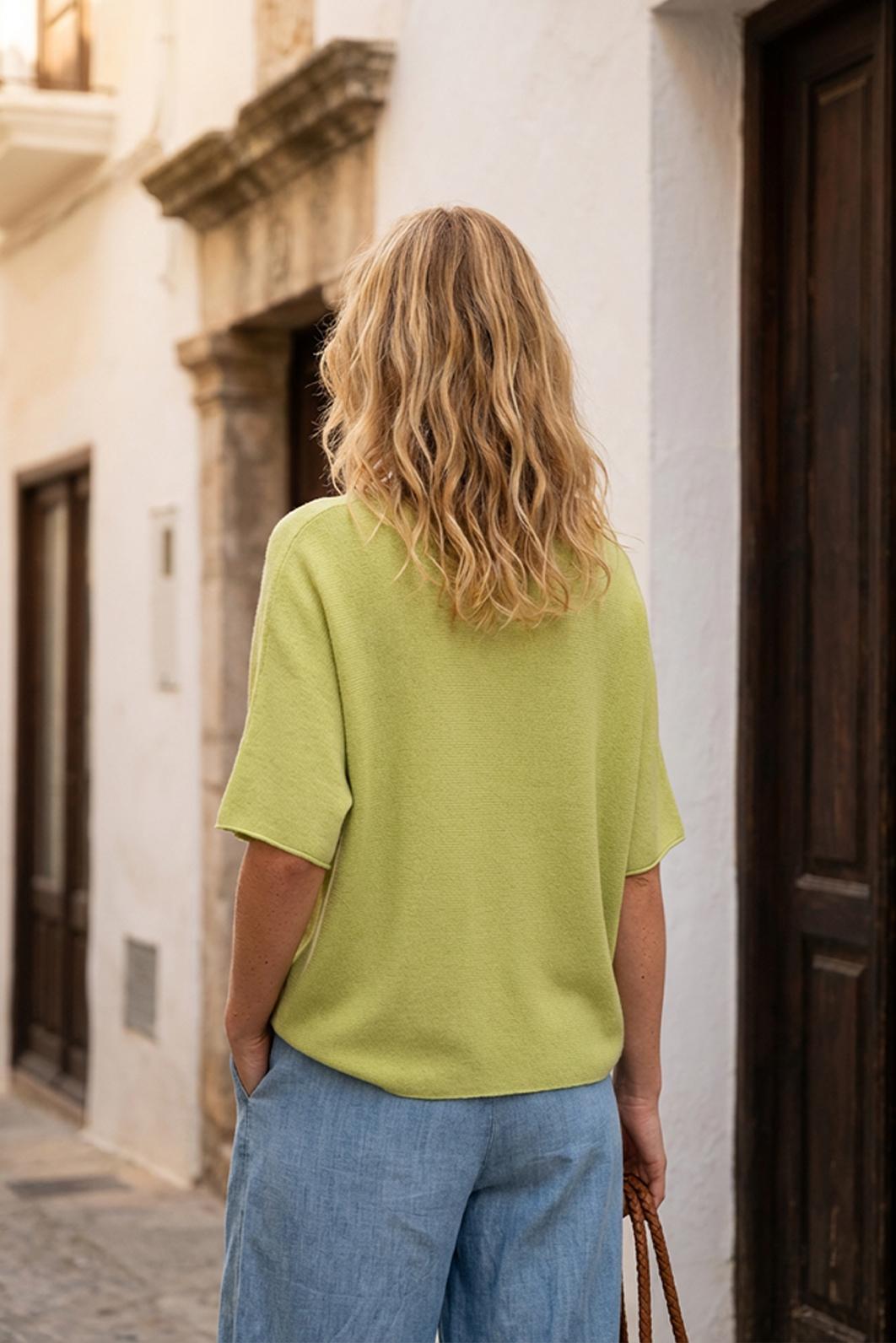 • oblíbený matcha zelený dámský svetřík s krátkým rukávem od oblíbené značky PECA del SOL v moderním odstínu Matcha Green