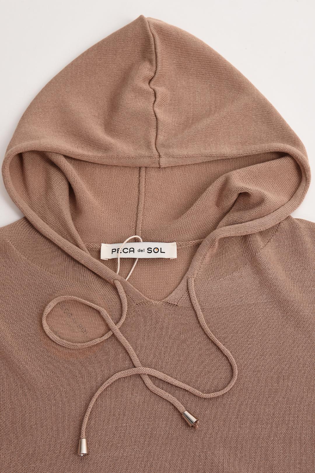 HNĚDÉ ÚPLETOVÉ TRIČKO S KAPUCÍ DÁMSKÉ PECA del SOL