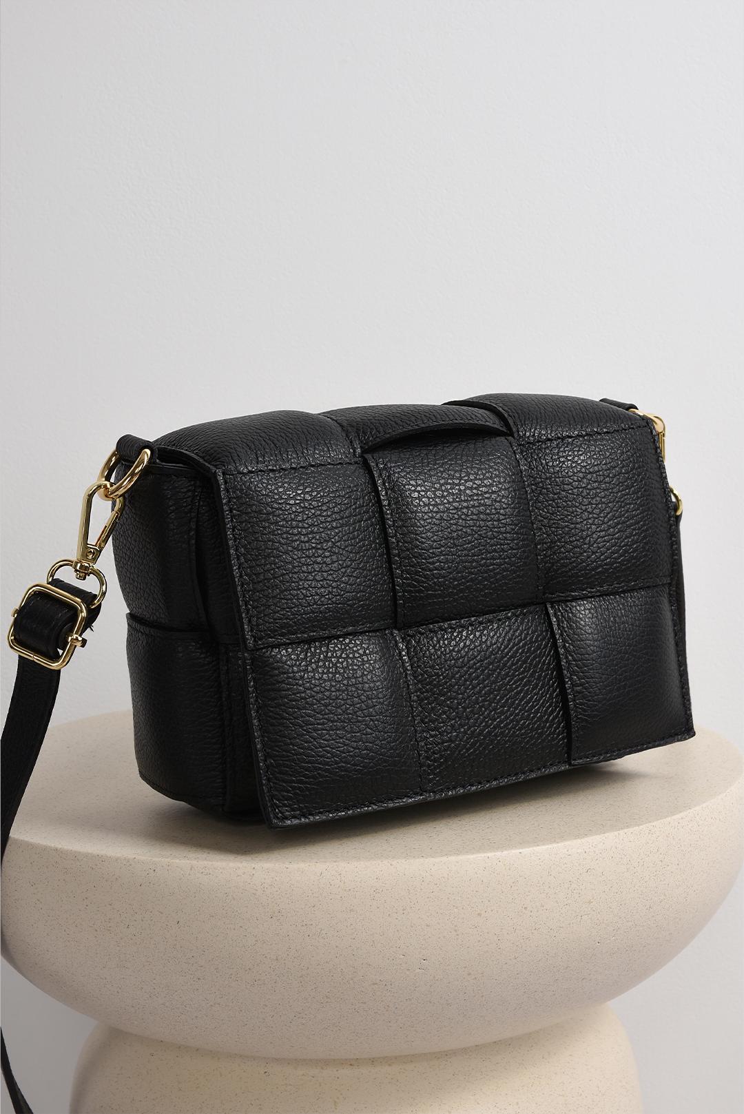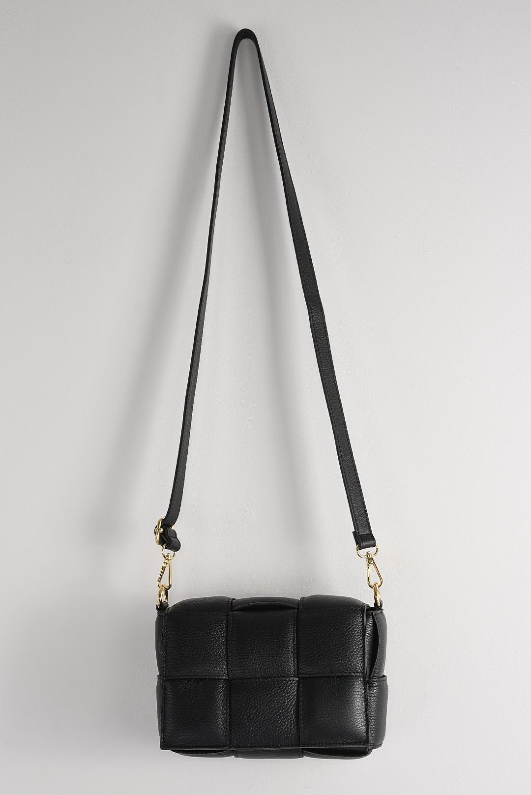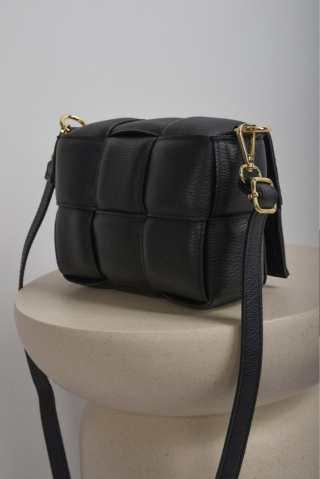 ČERNÁ KOŽENÁ PROPLÉTANÁ KABELKA PECA del SOL