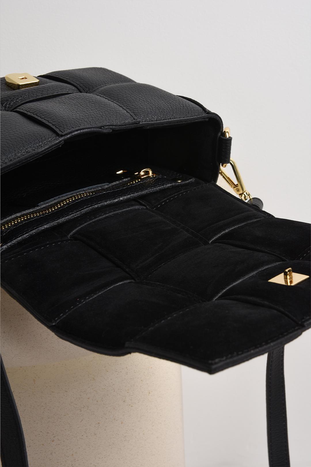 • uvnitř kožené kabelky se skrývá černý semišový interiér, je měkký a chrání vše, co nosíte s sebou