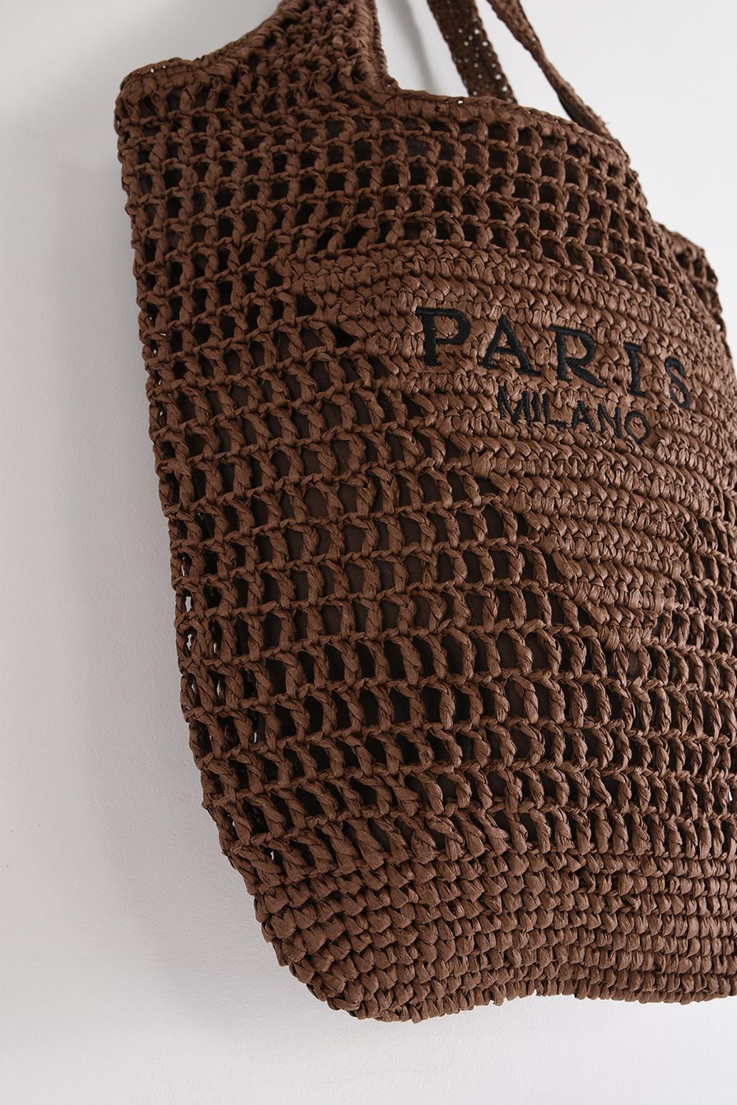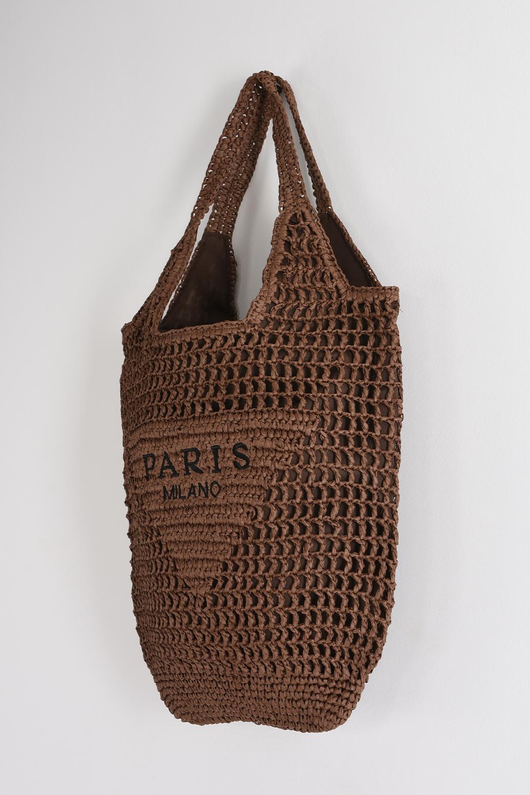 • slaměná kabelka zaujme svou vzdušnou strukturou a nápisem „Paris Milano“, který jemně odkazuje na ikonickou módní atmosféru velkoměst