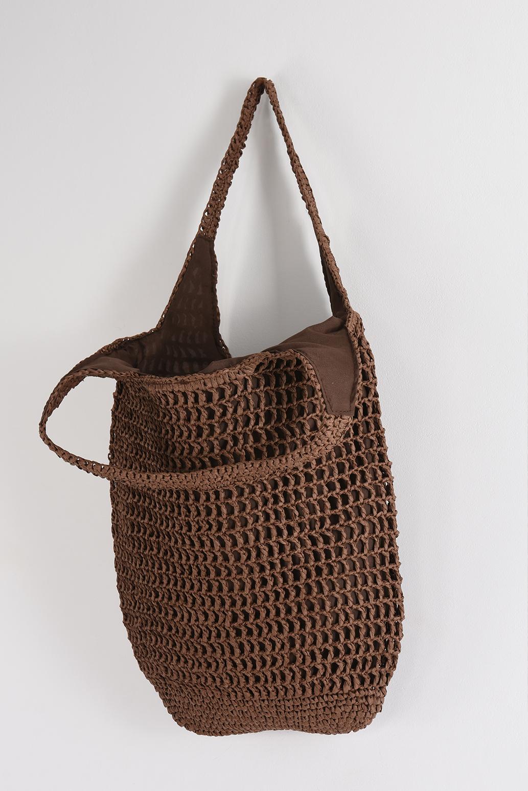 • hnědá slaměná kabelka přes rameno PECA del SOL v čokoládovém odstínu