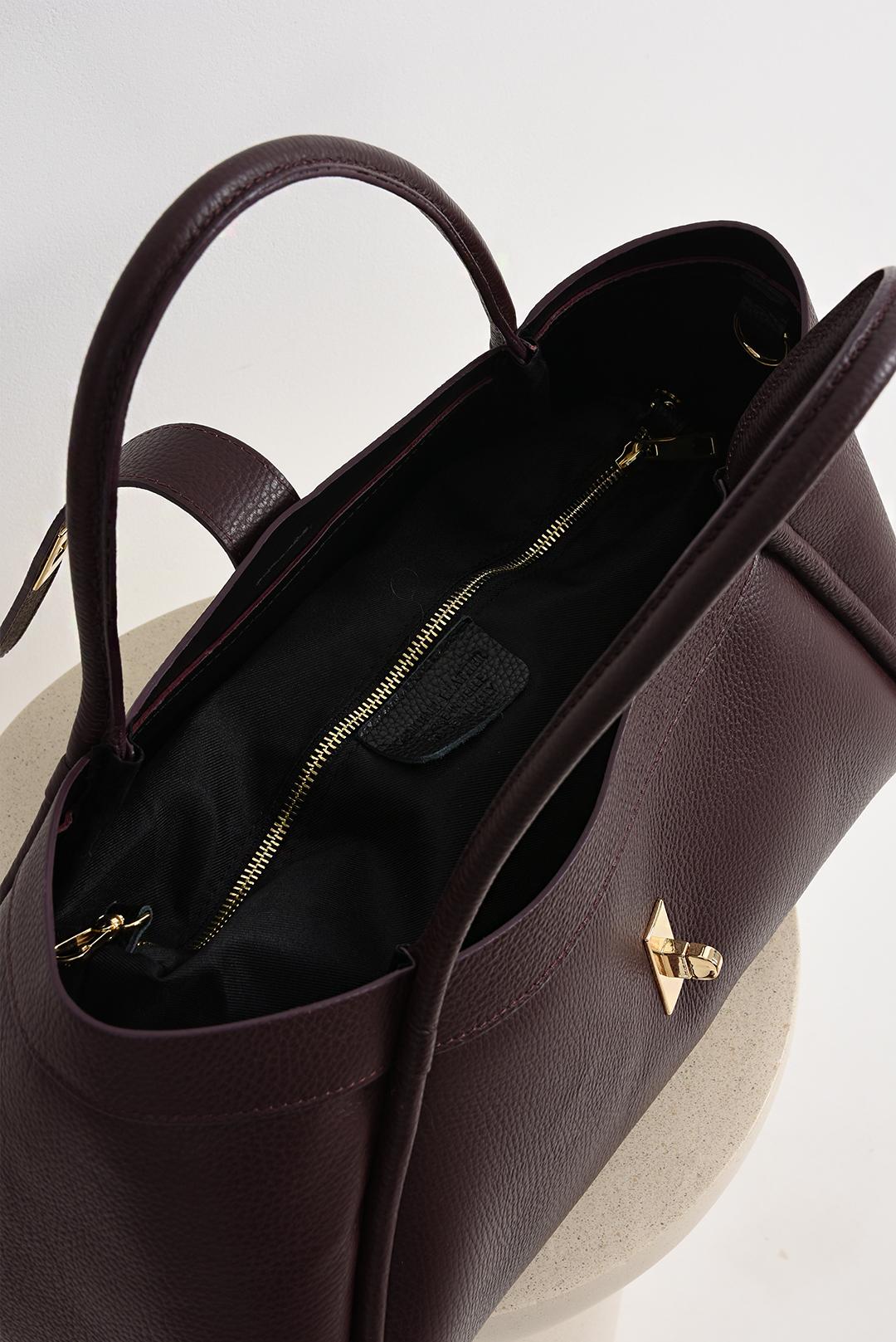 • kožená burgundy kabelka soft tote bag od PECA del SOL je jako klidná jistota každého dne, jemná na dotek a přitom dostatečně výrazná, aby dodala outfitům charakter