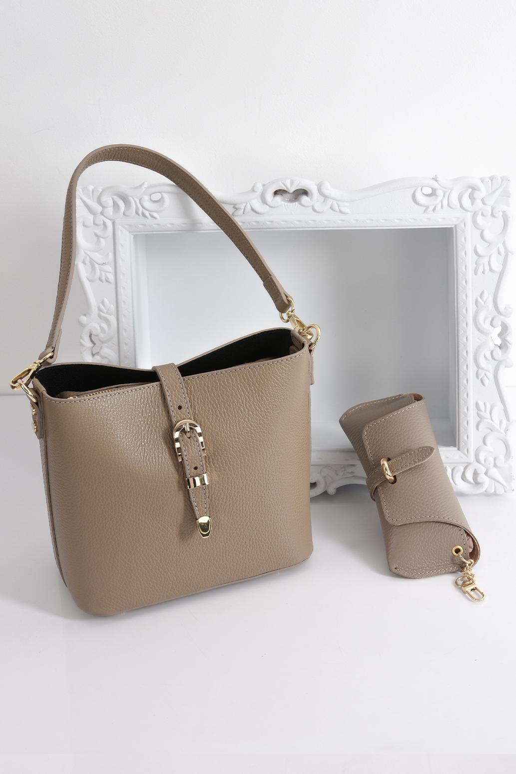 TAUPE KOŽENÉ POUZDRO NA BRÝLE PECA del SOL