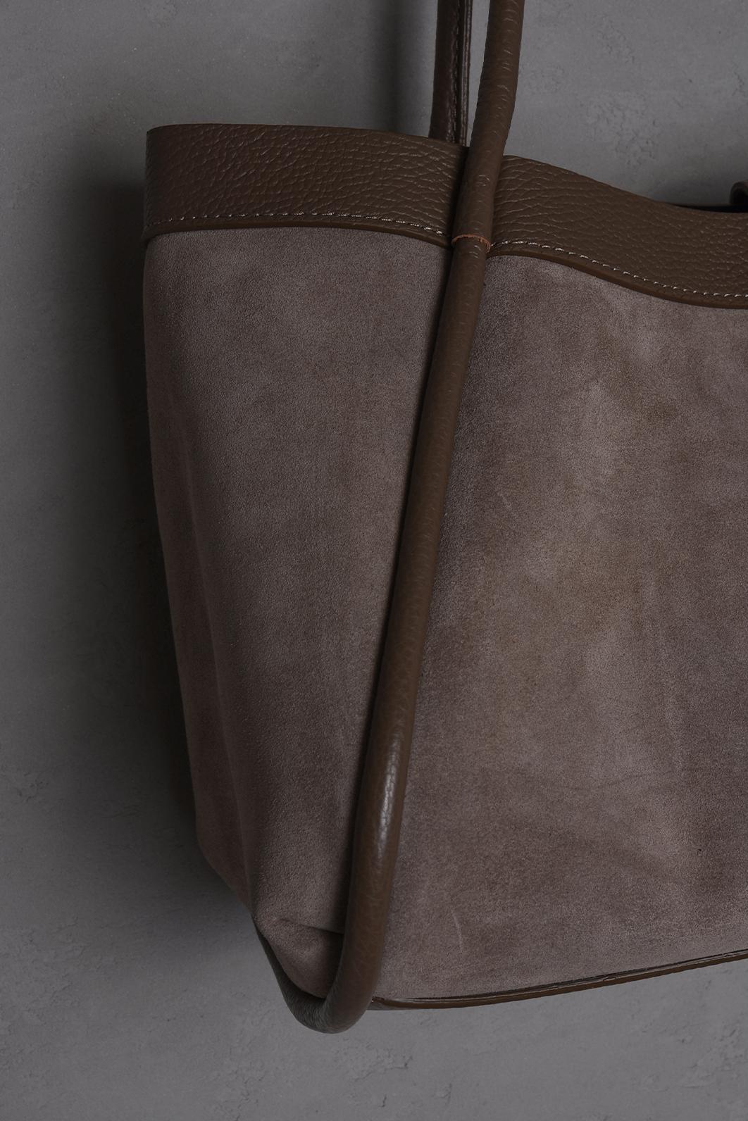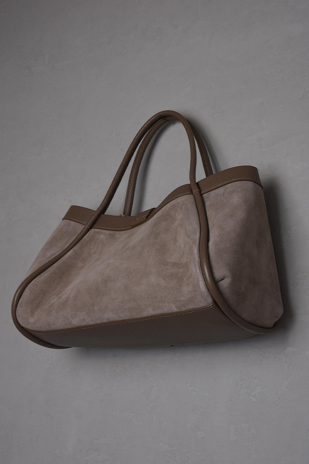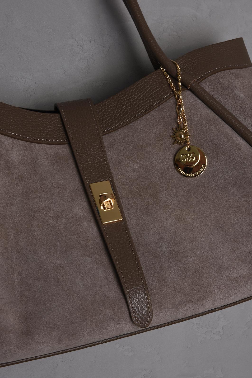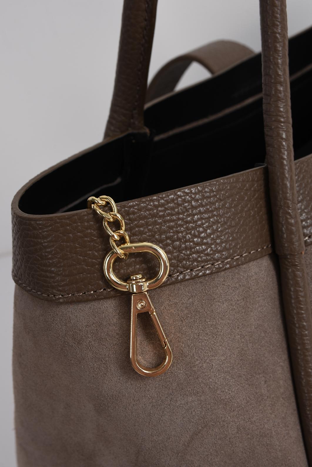 • soft tote bag velká kabelka z broušené kůže PECA del SOL v taupe odstínu kombinuje hladkou a broušenou kůži, což jí dává zajímavou hloubku i jemně kontrastní strukturu