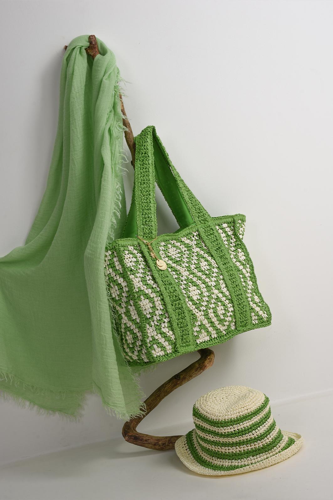 ZELENÁ SLAMĚNÁ TAŠKA SHOPPER PECA del SOL Solara bag