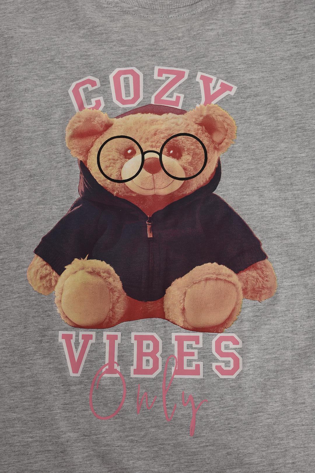 • oversized tričko s vtipným potiskem na zádech (medvěd v mikině a s brýlemi) s nápisem COZY VIBES Only