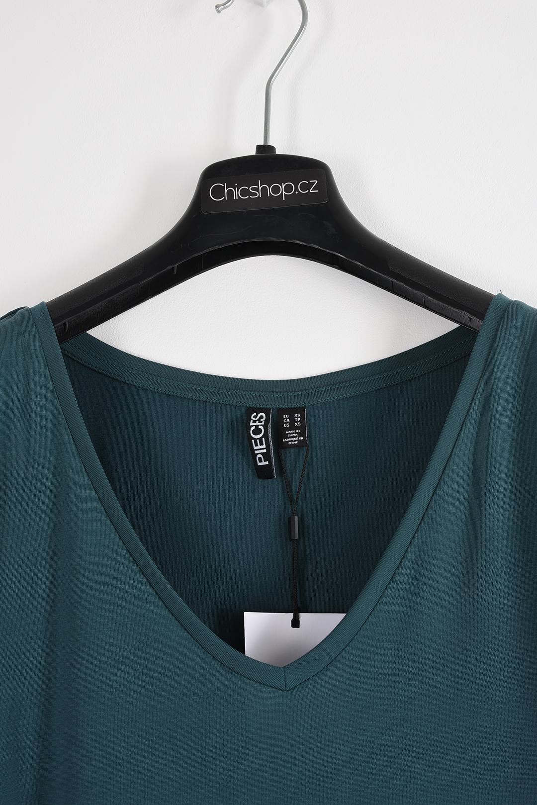 PETROLEJOVÉ DÁMSKÉ MODALOVÉ TRIČKO S VÝSTŘIHEM DO V Pieces