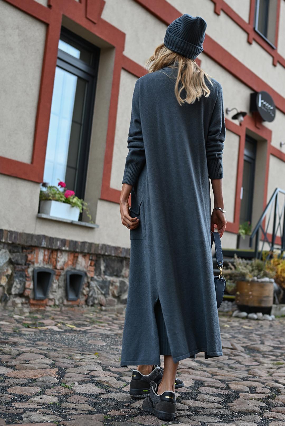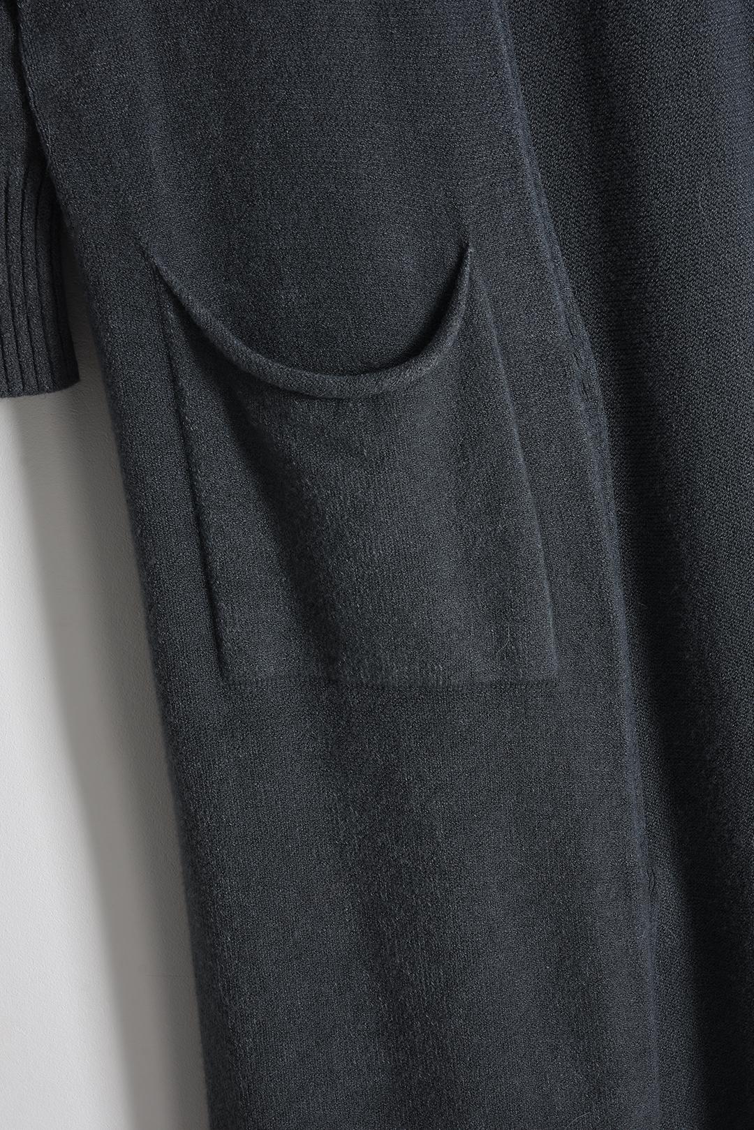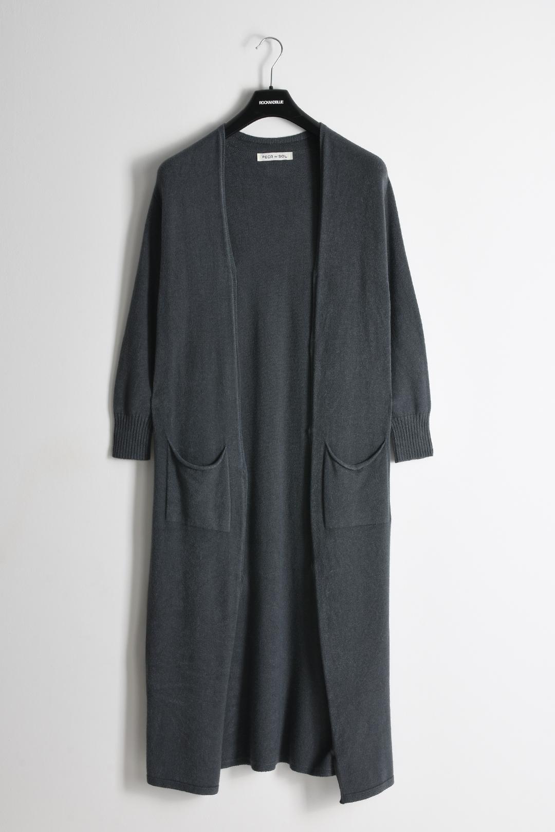 • dámský kardigan dlouhý PECA del SOL v elegantním antracitovém odstínu přináší dokonalou rovnováhu mezi minimalismem a komfortem