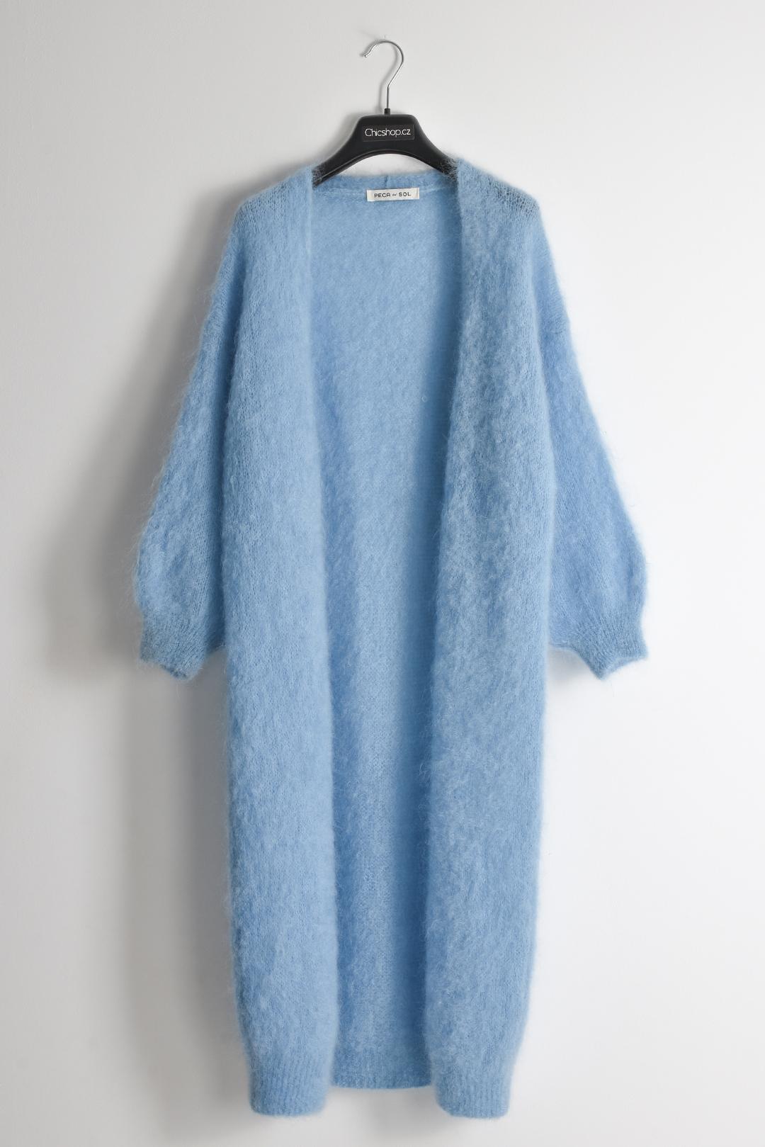 NEBESKY MODRÝ DLOUHÝ TEPLÝ KARDIGAN Z MOHÉRU PECA del SOL