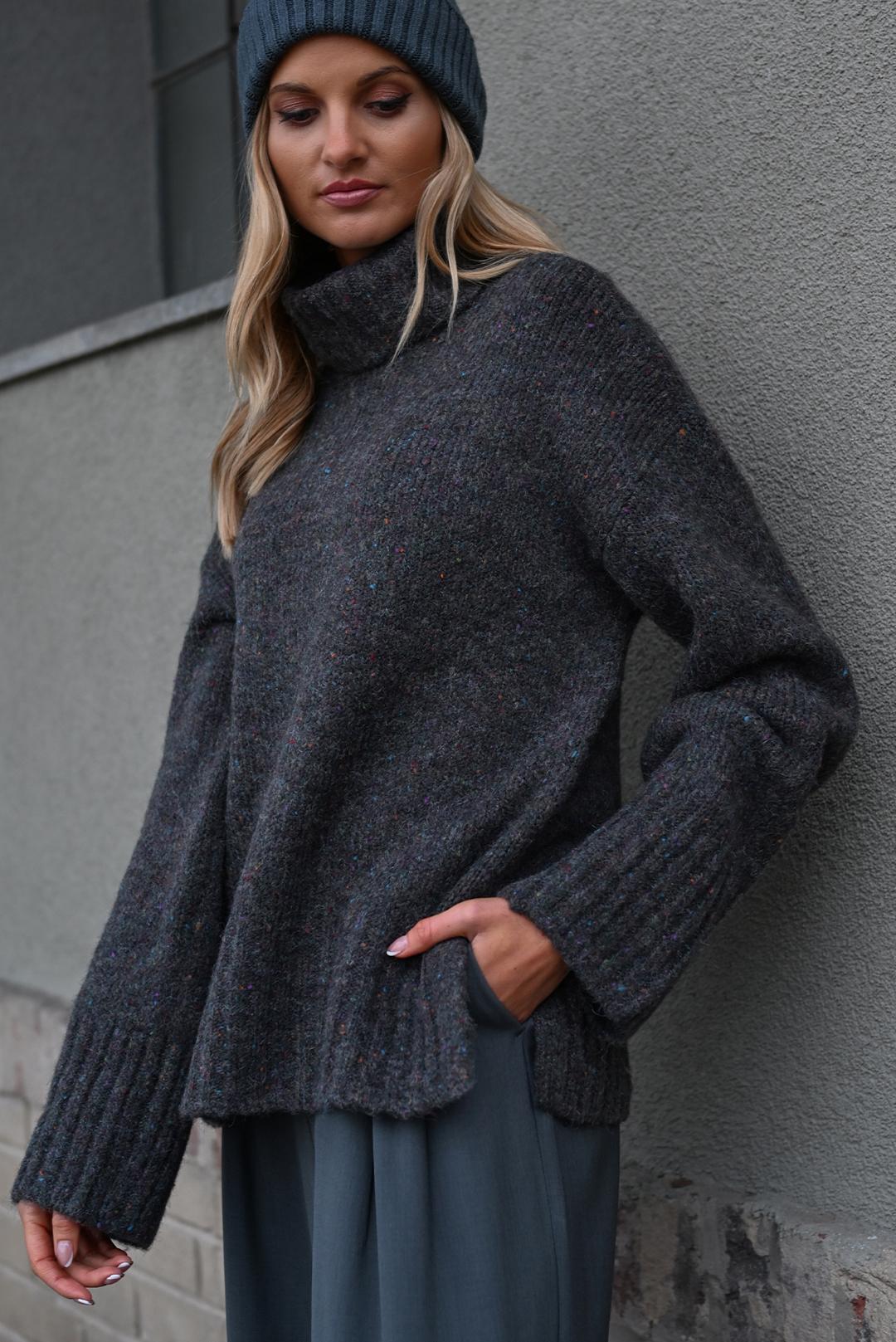• teplý dámský svetr s rolákem Vero Moda v antracitovém odstínu s cool vícebarevným melírováním