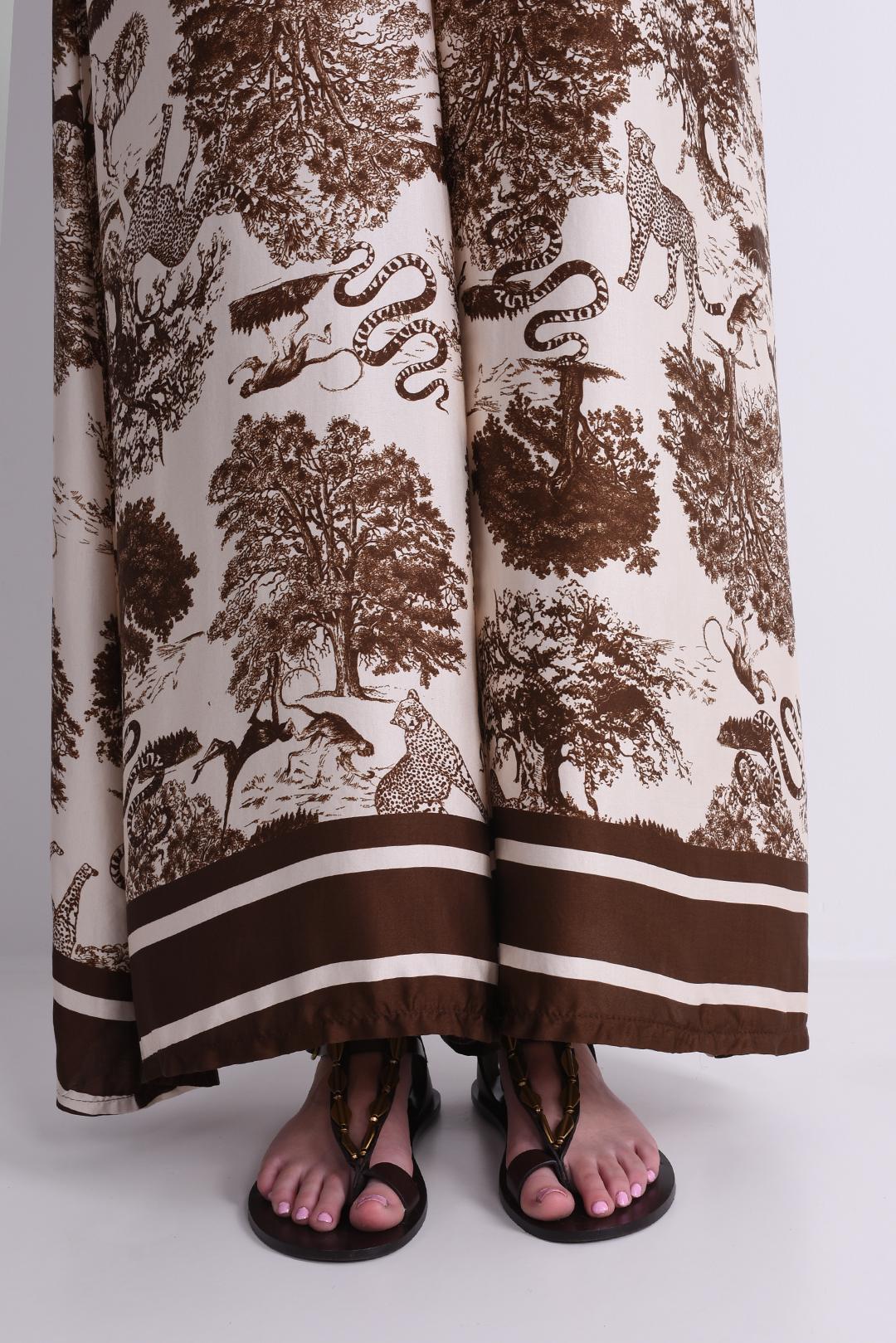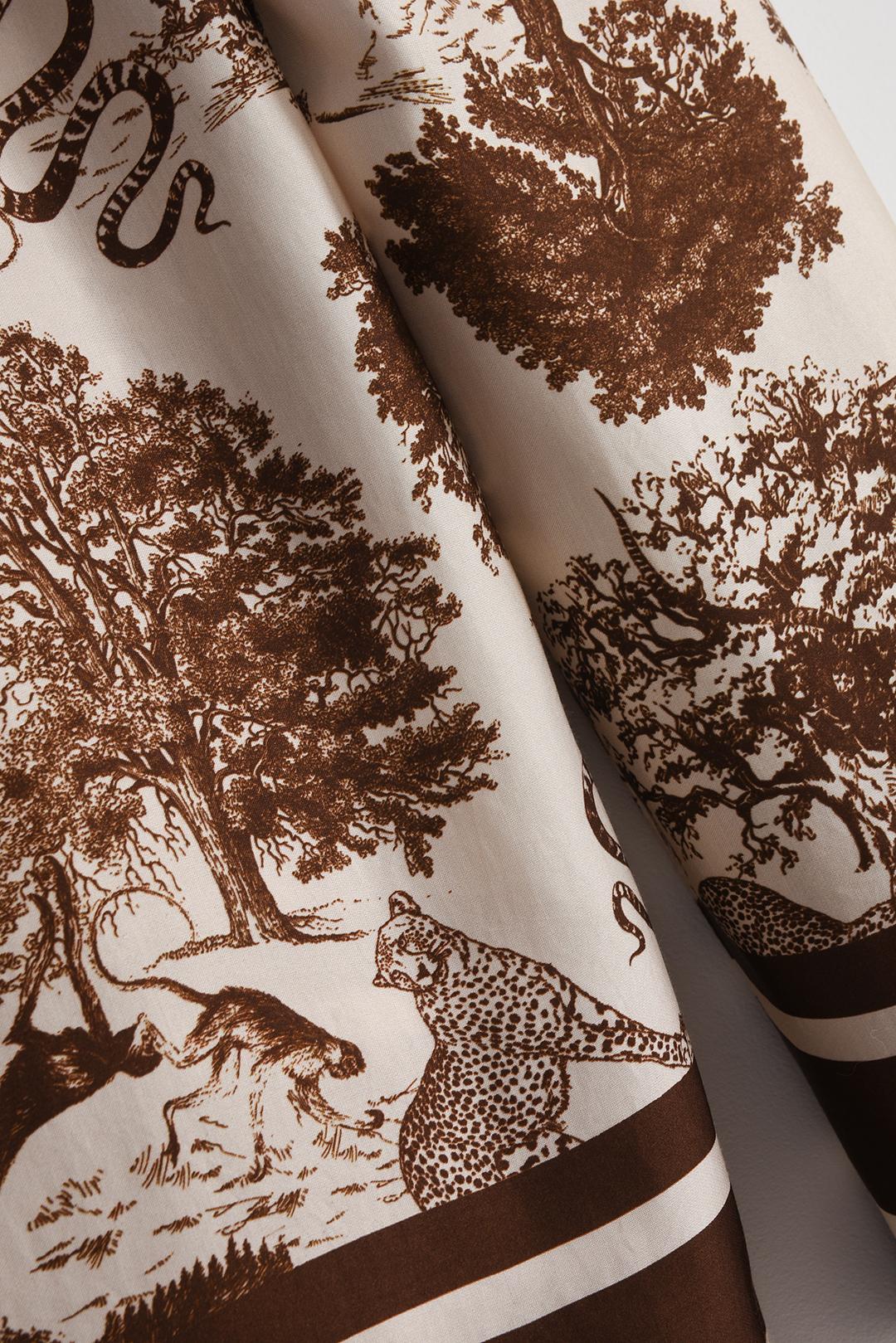 • krémový základ s hnědým potiskem džungle motivy stromů, zvířat a hadů zaujmou na první pohled