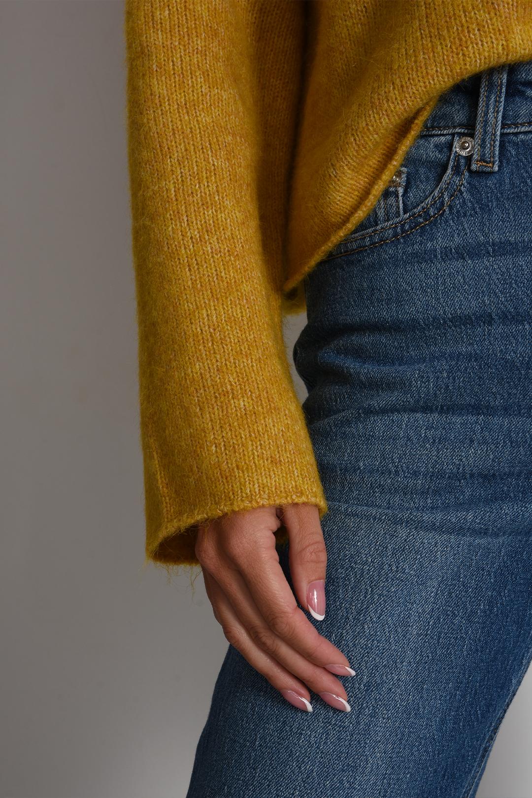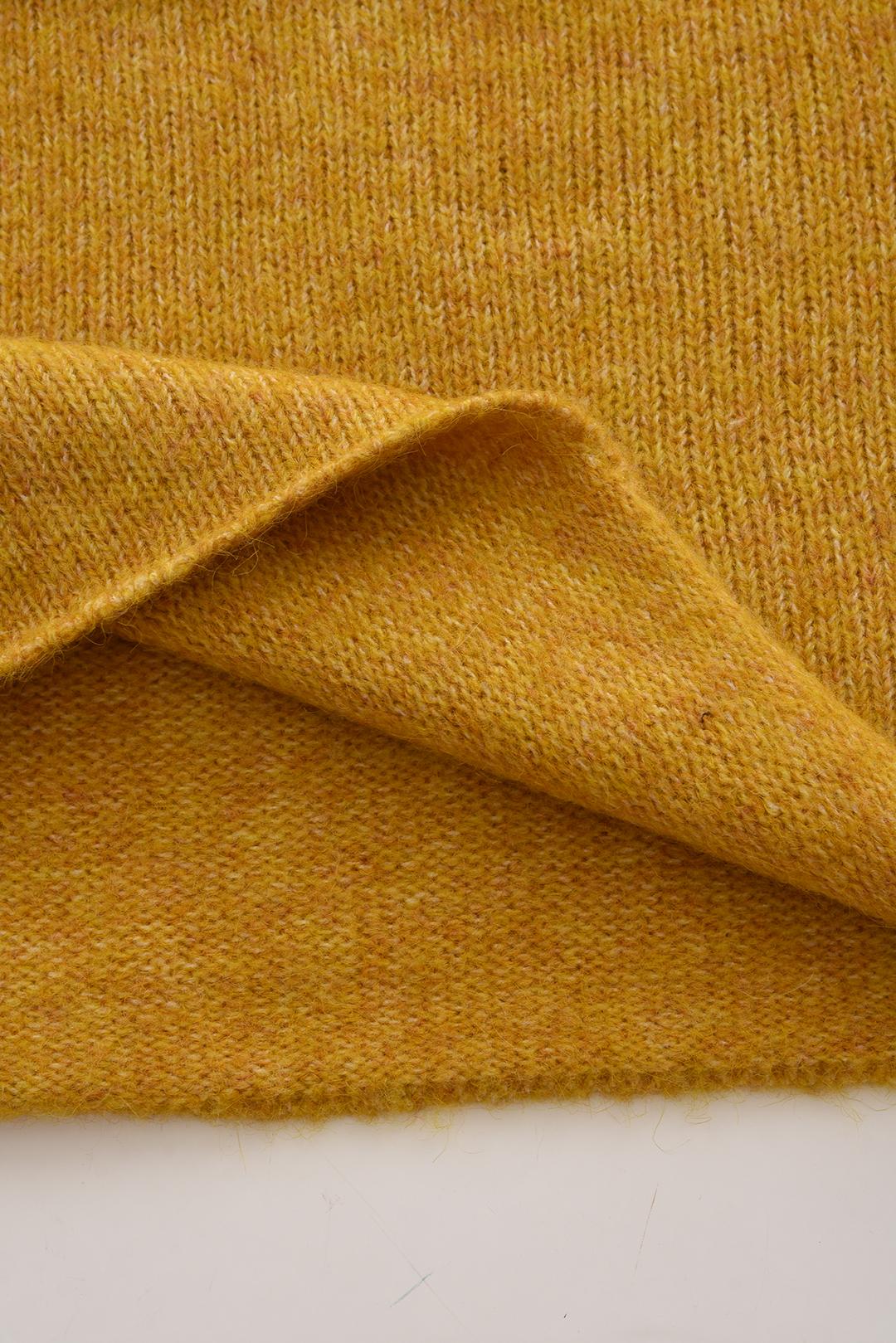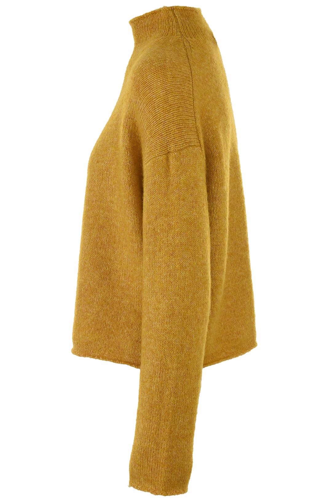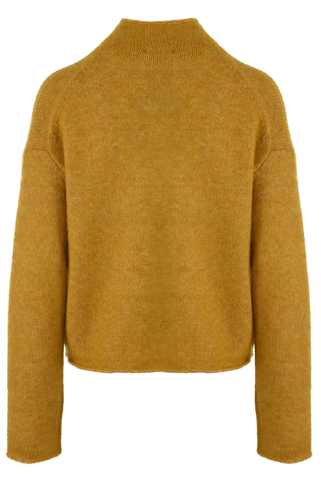 • krátký stojáček svetru jemně kopíruje linii krku a dodává hořčicovému svetru moderní, lehce chic look