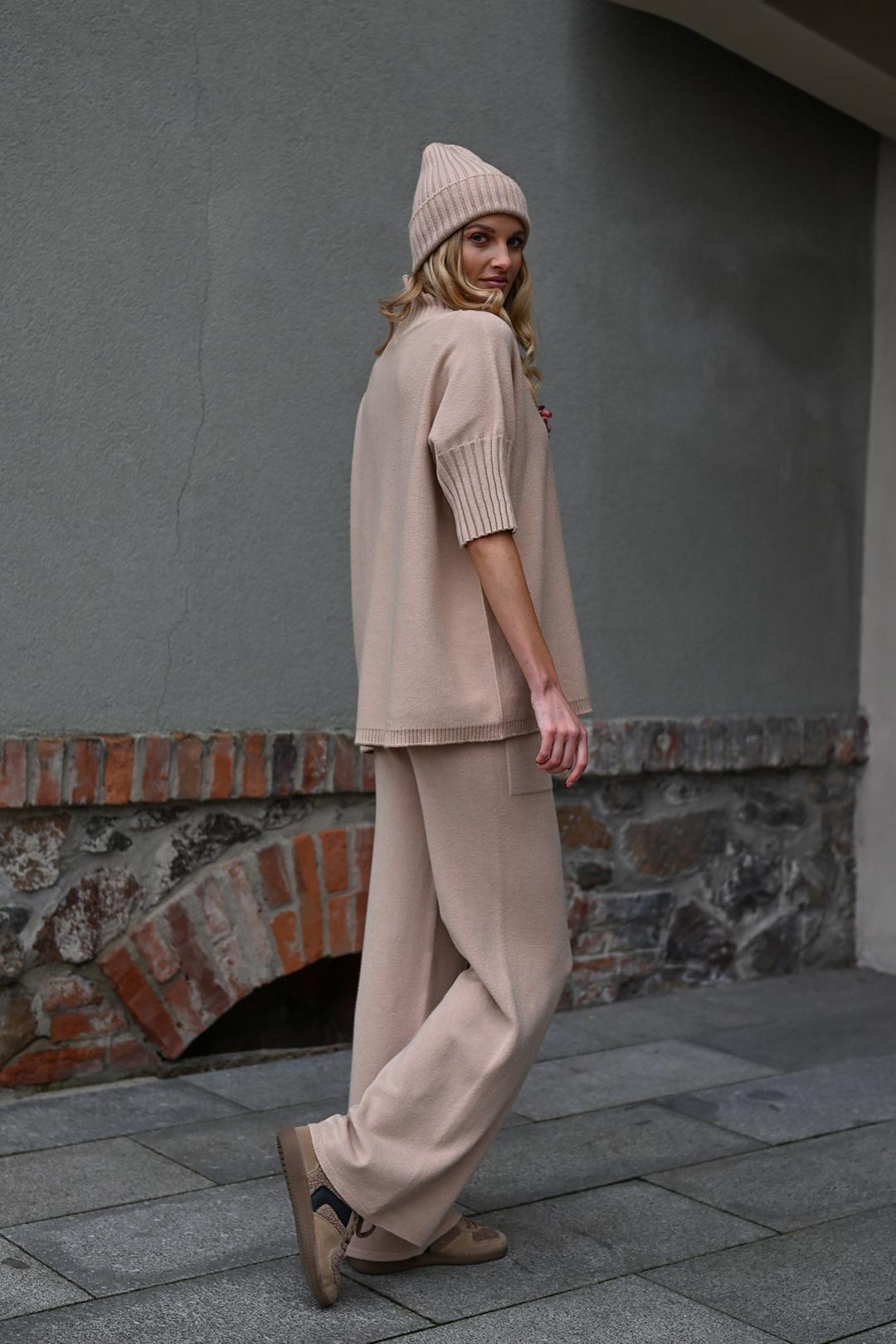 CAMEL BÉŽOVÉ DÁMSKÉ ÚPLETOVÉ KALHOTY