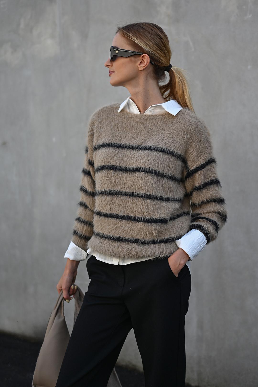 • chlupatý svetr s pruhy od prémiové holandské značky Red Button, ve kterém se budete cítit jako v peřince, je hebký, nadýchaný a neodolatelně měkoučký