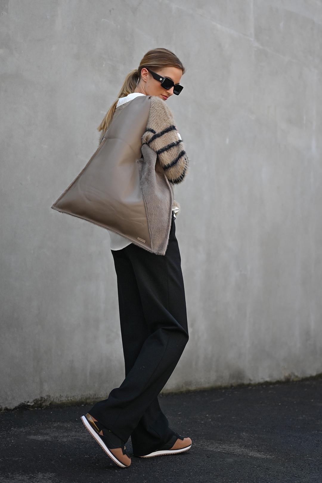 • béžový základ s černými pruhy je hravý, ale přitom zůstává elegantní – takový kousek prostě zvládne oboje