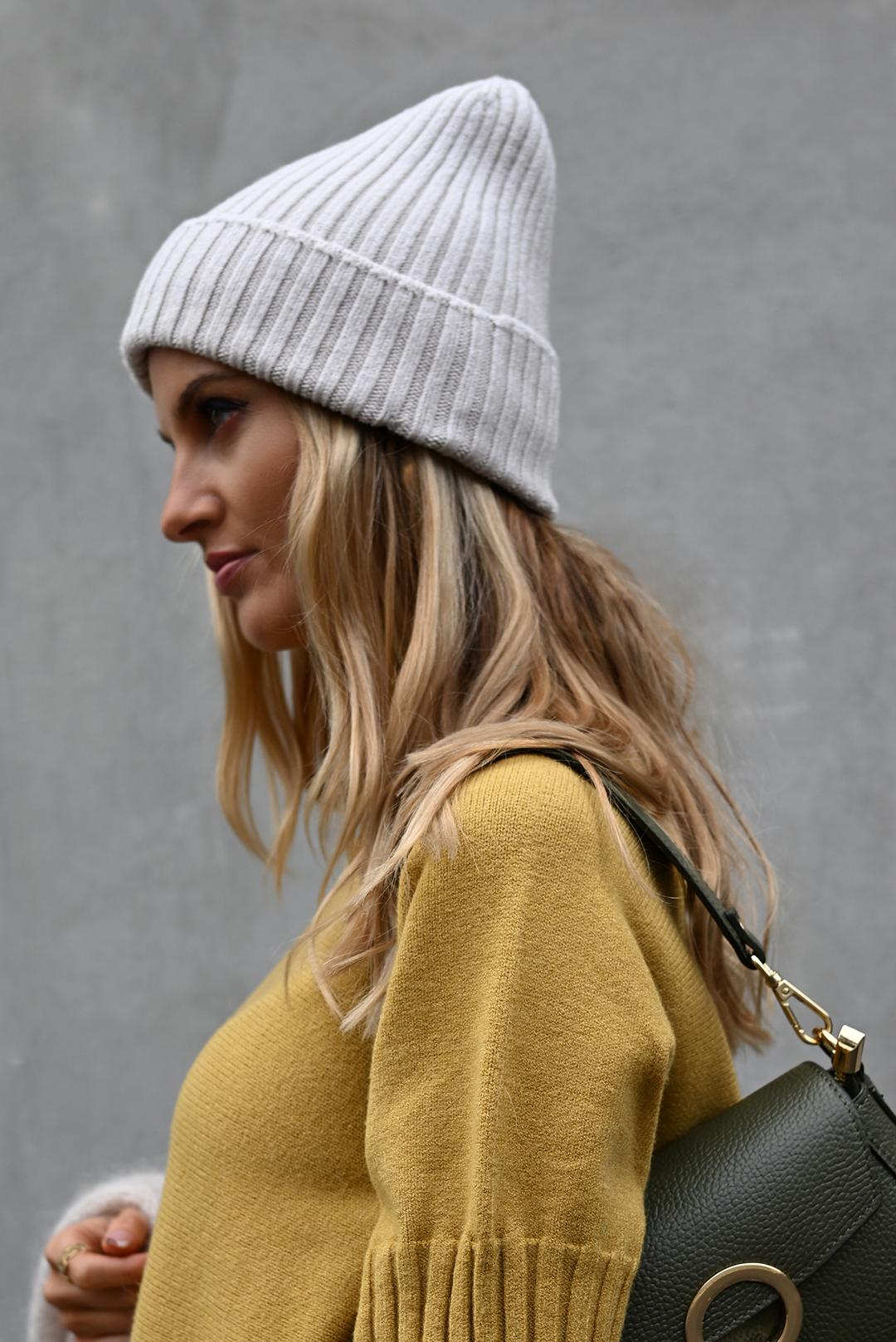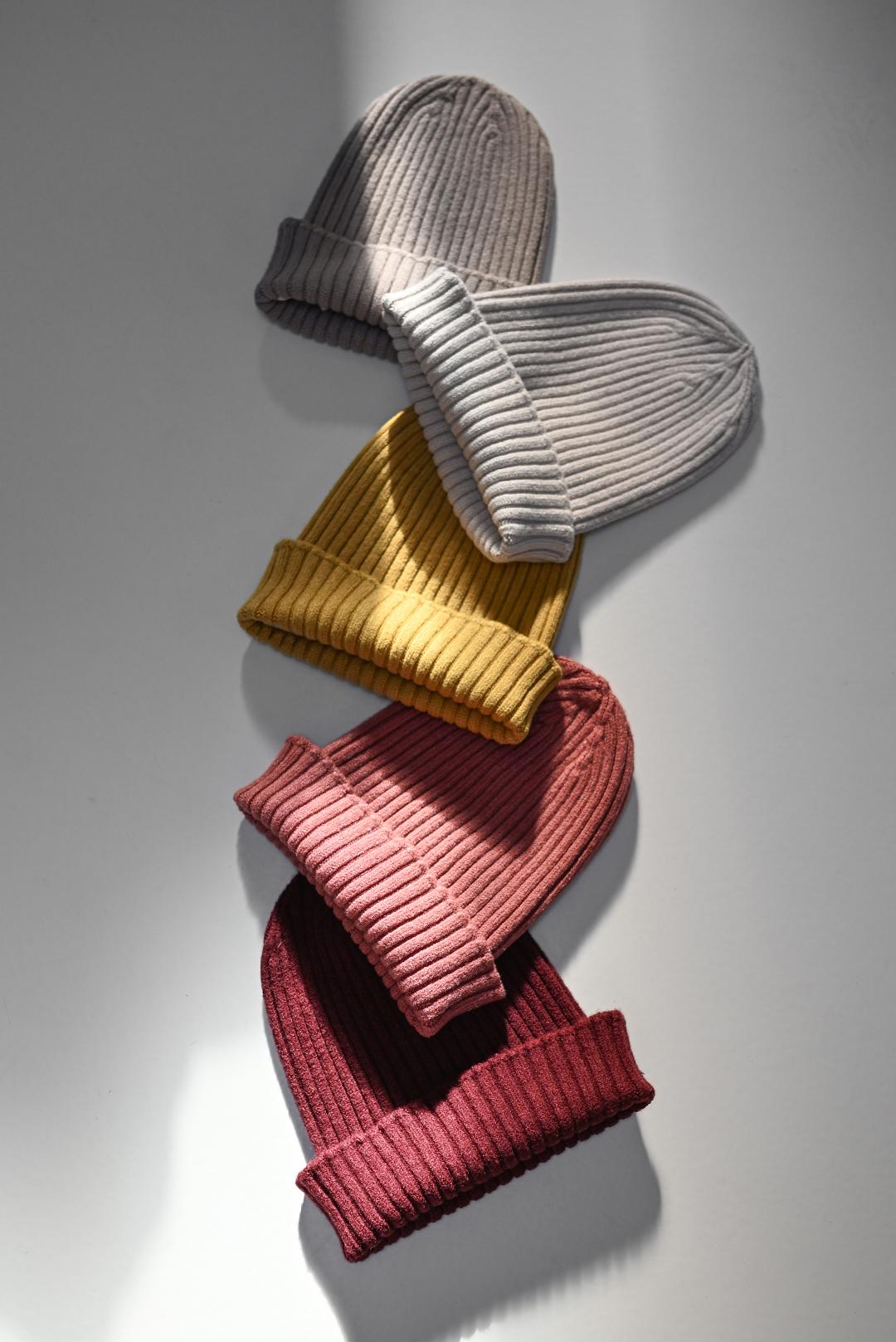 • světlá krémová čepice z hebké žebrované pleteniny – ideální společník pro každodenní nošení
