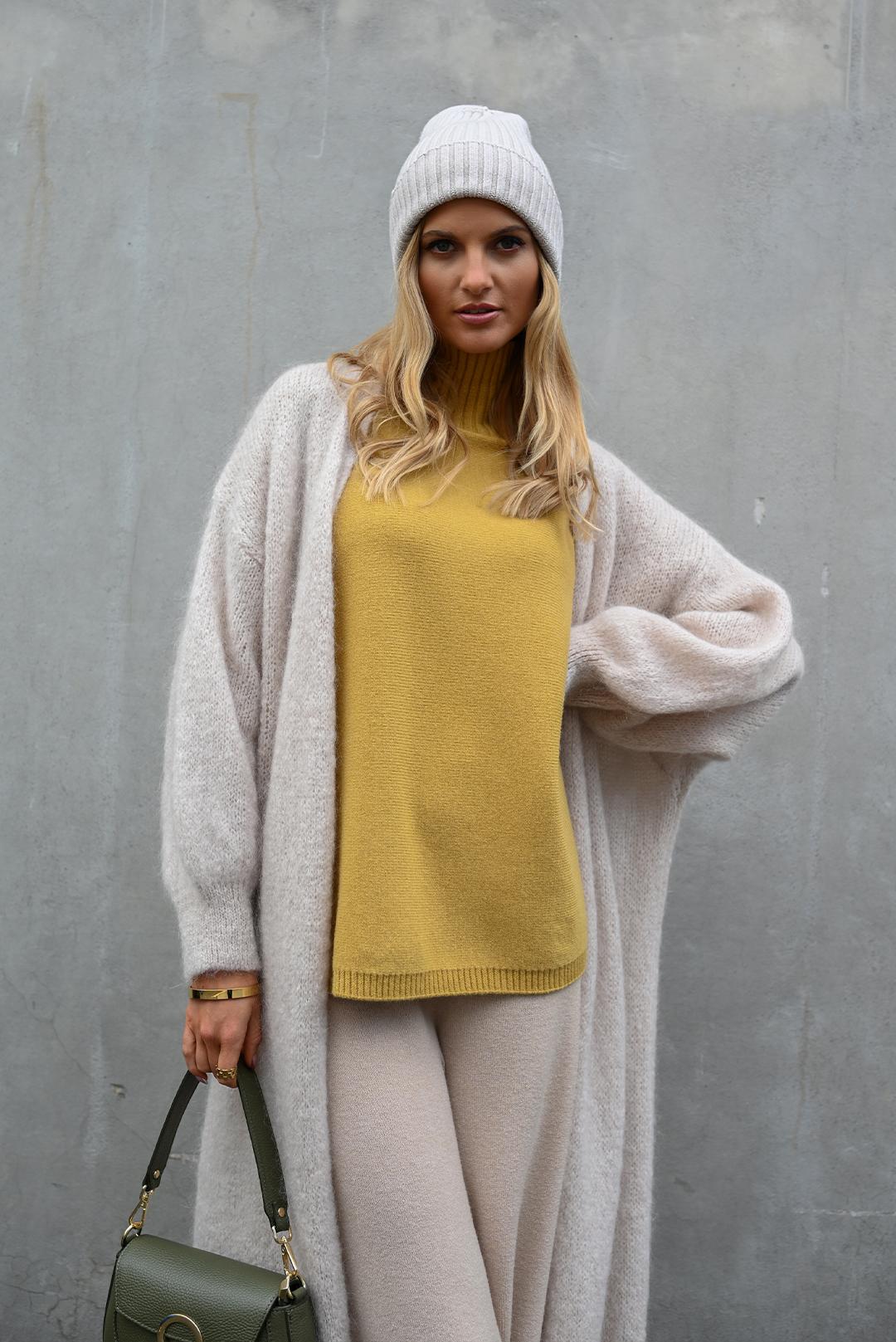 BÉŽOVÝ MOHÉROVÝ DLOUHÝ KARDIGAN Peca del Sol