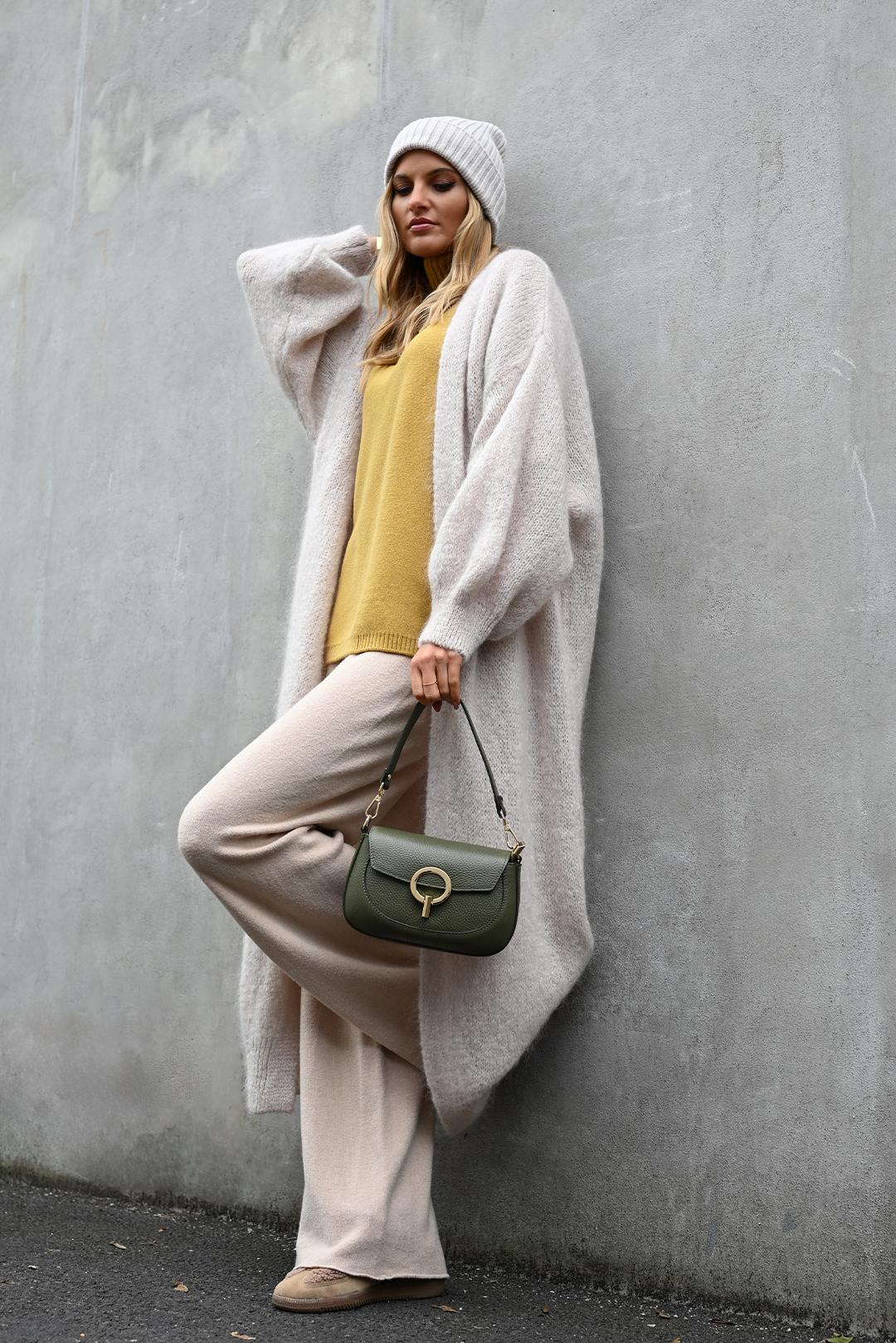 • skvěle ladí s neutrálními tóny, béžovou, šedou i kontrastní černou – doplní jak zimní kabát, tak vlněný svetr