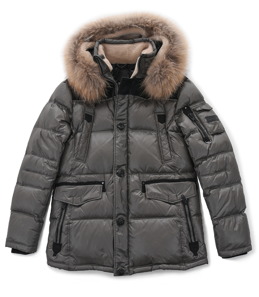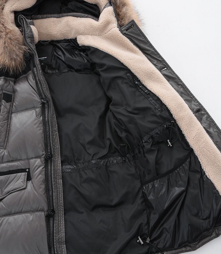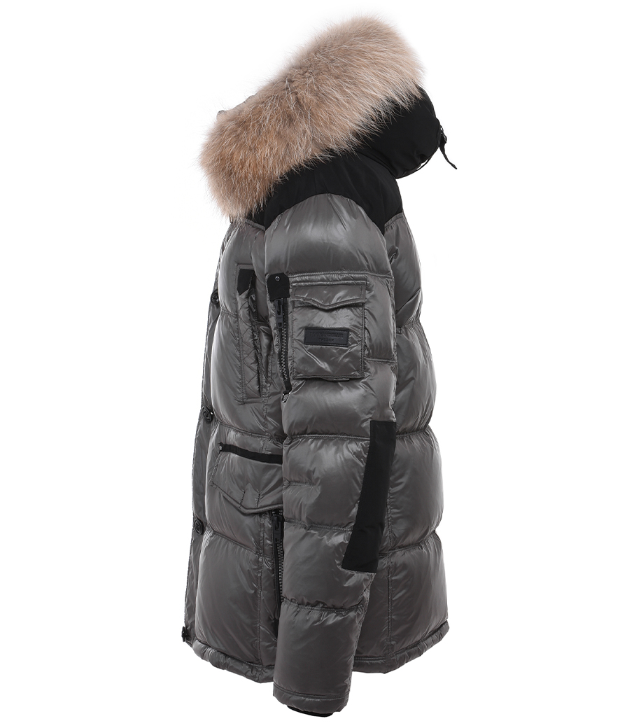 • PÁNSKÁ péřová bunda s kapucí a kožešinou