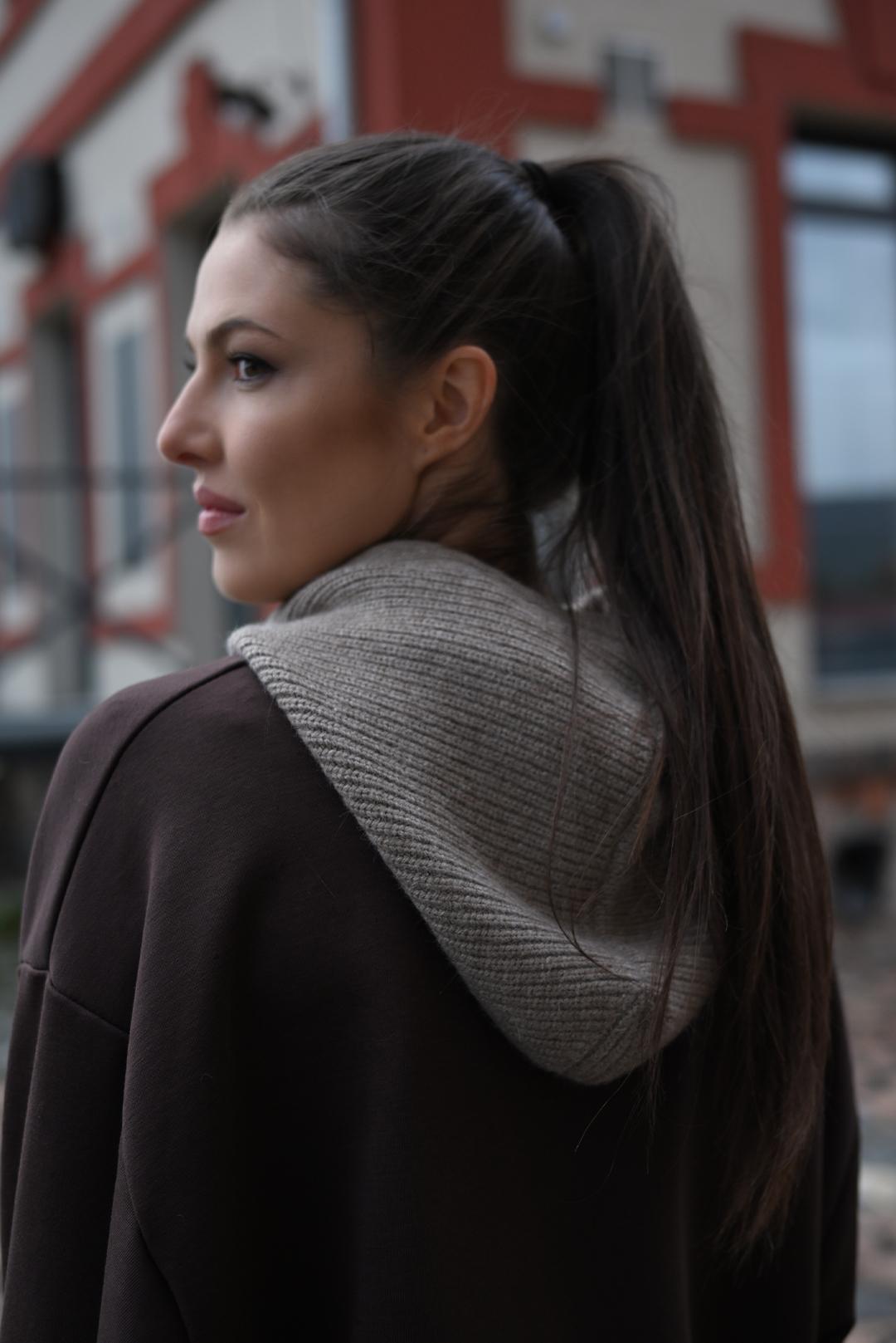 • neutrální hnědý odstín balaklavy s melírem ladí se všemi barvami podzimu i zimy a dodává outfitu nenucený šmrnc