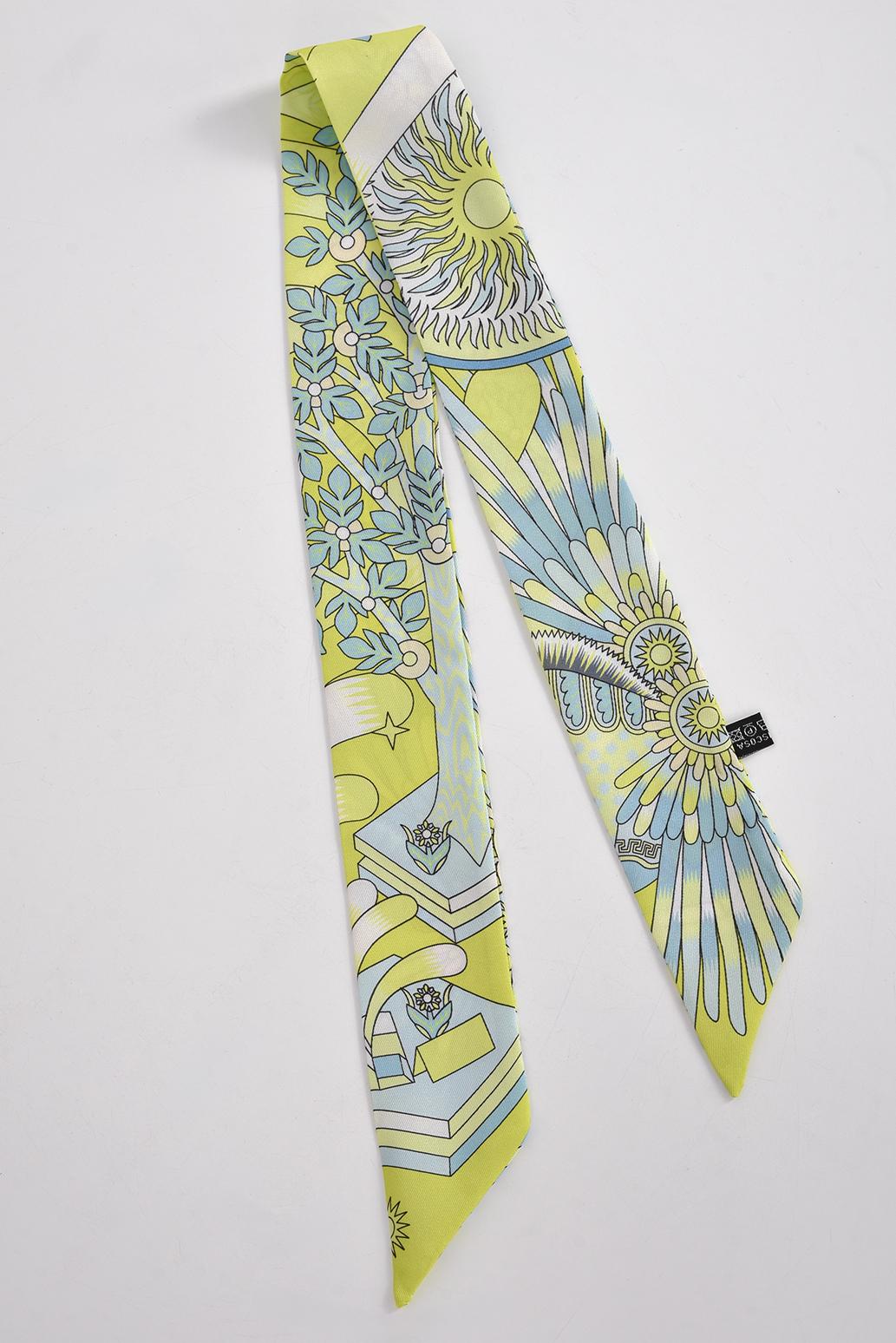 • dámský úzký saténový šátek PECA del SOL v neonově žlutém ladění rozzáří outfit výraznou energií a nepřehlédnutelným vzorem inspirovaným slunečními paprsky