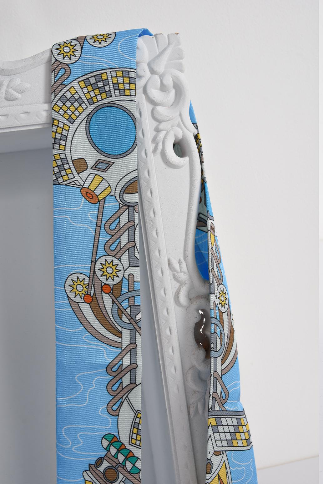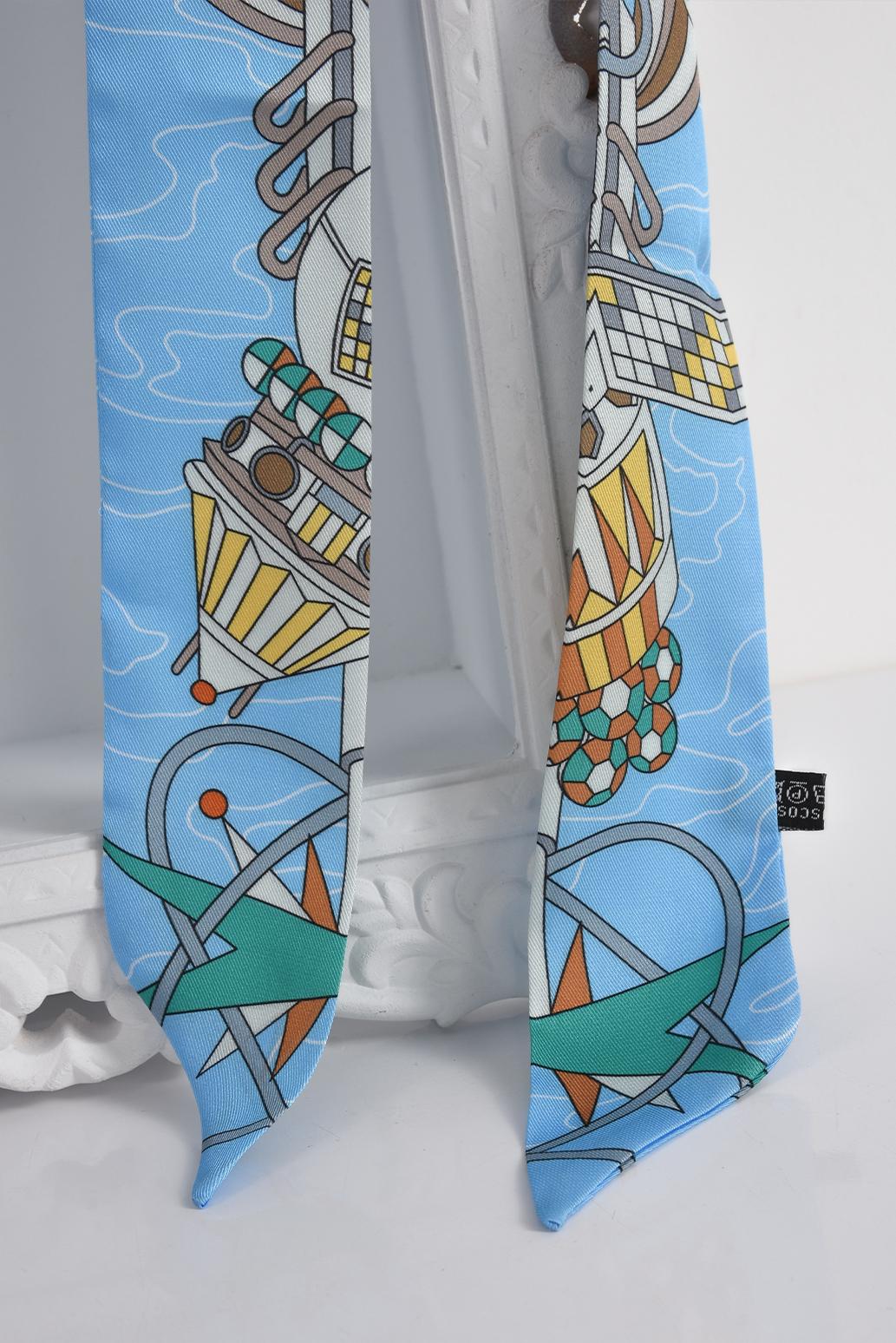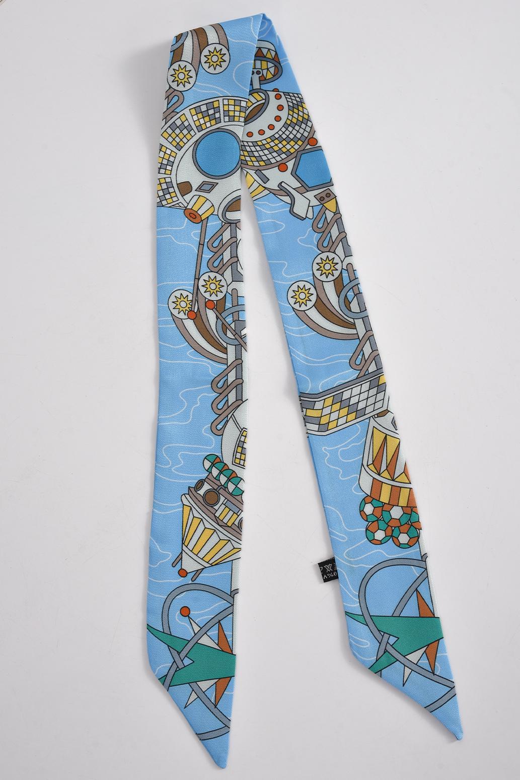 • dámský saténový šátek Orbit Chic od PECA del SOL v osvěžujícím modrém odstínu okamžitě upoutá hravým, abstraktním motivem